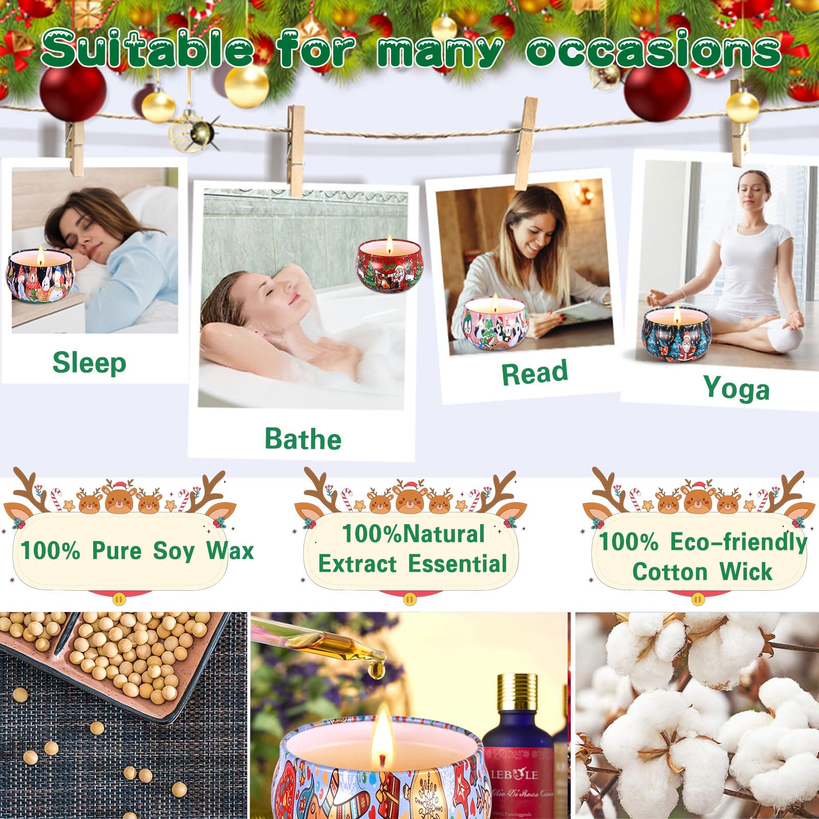 VergleichenDuftkerzen-Set, 12 Stück Weihnachtskerze, natürliches Sojawachs Kerzen, Aromatherapie Weihnachtskerzen Aroma