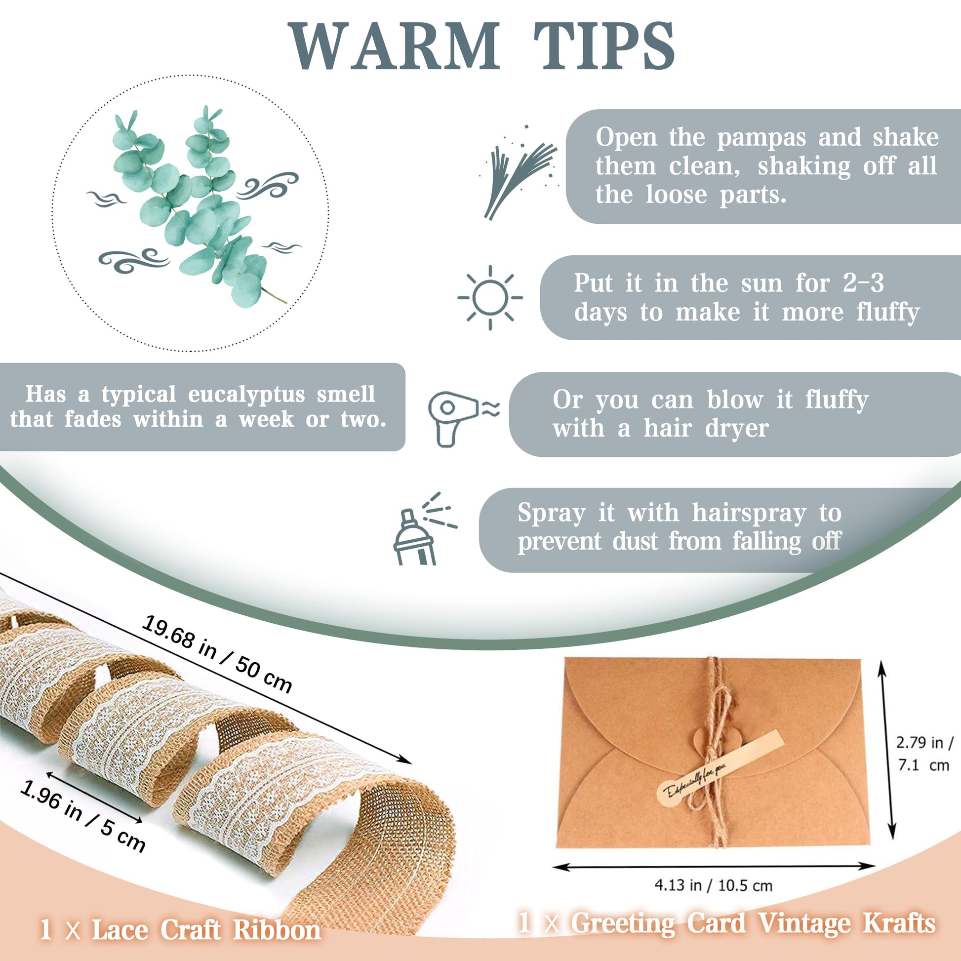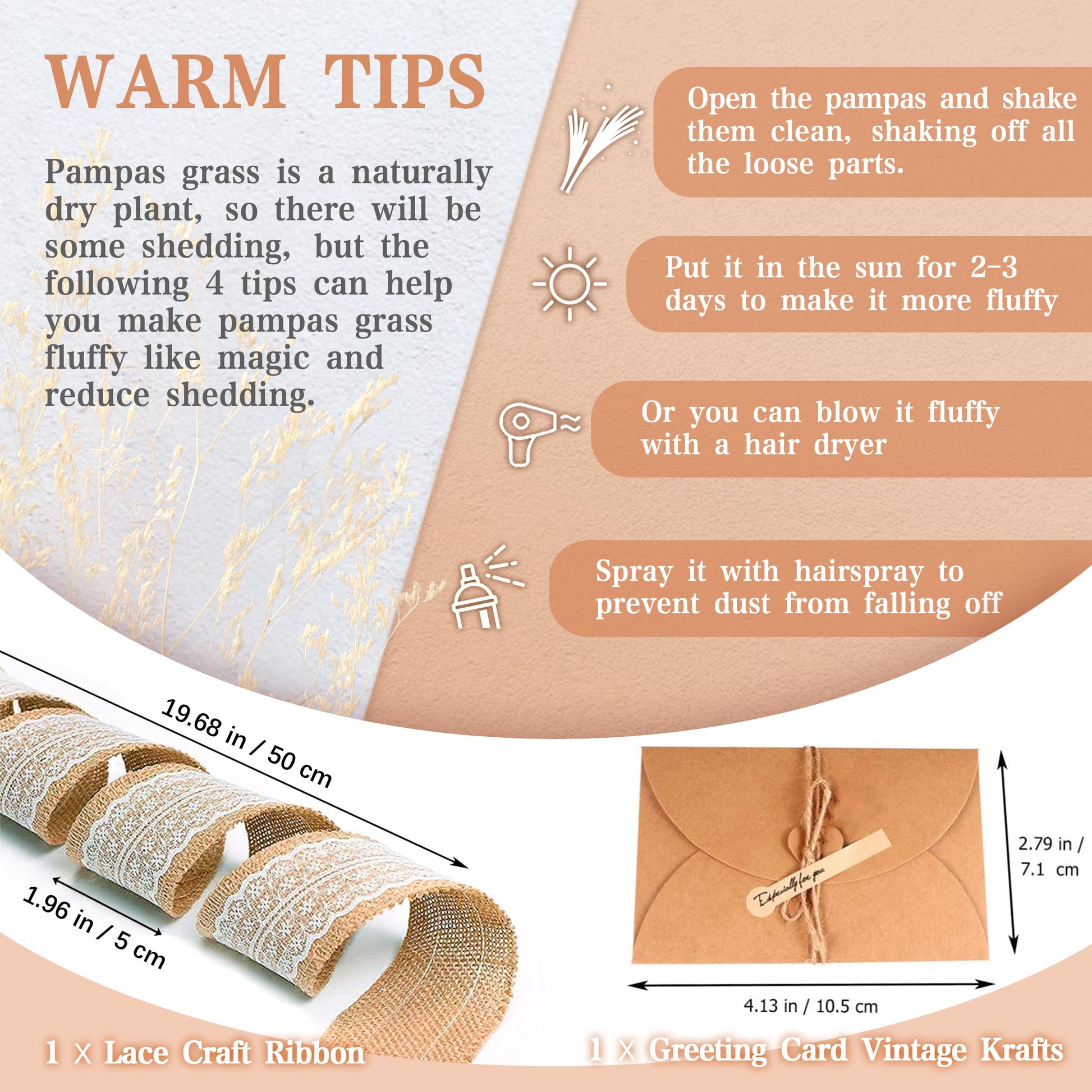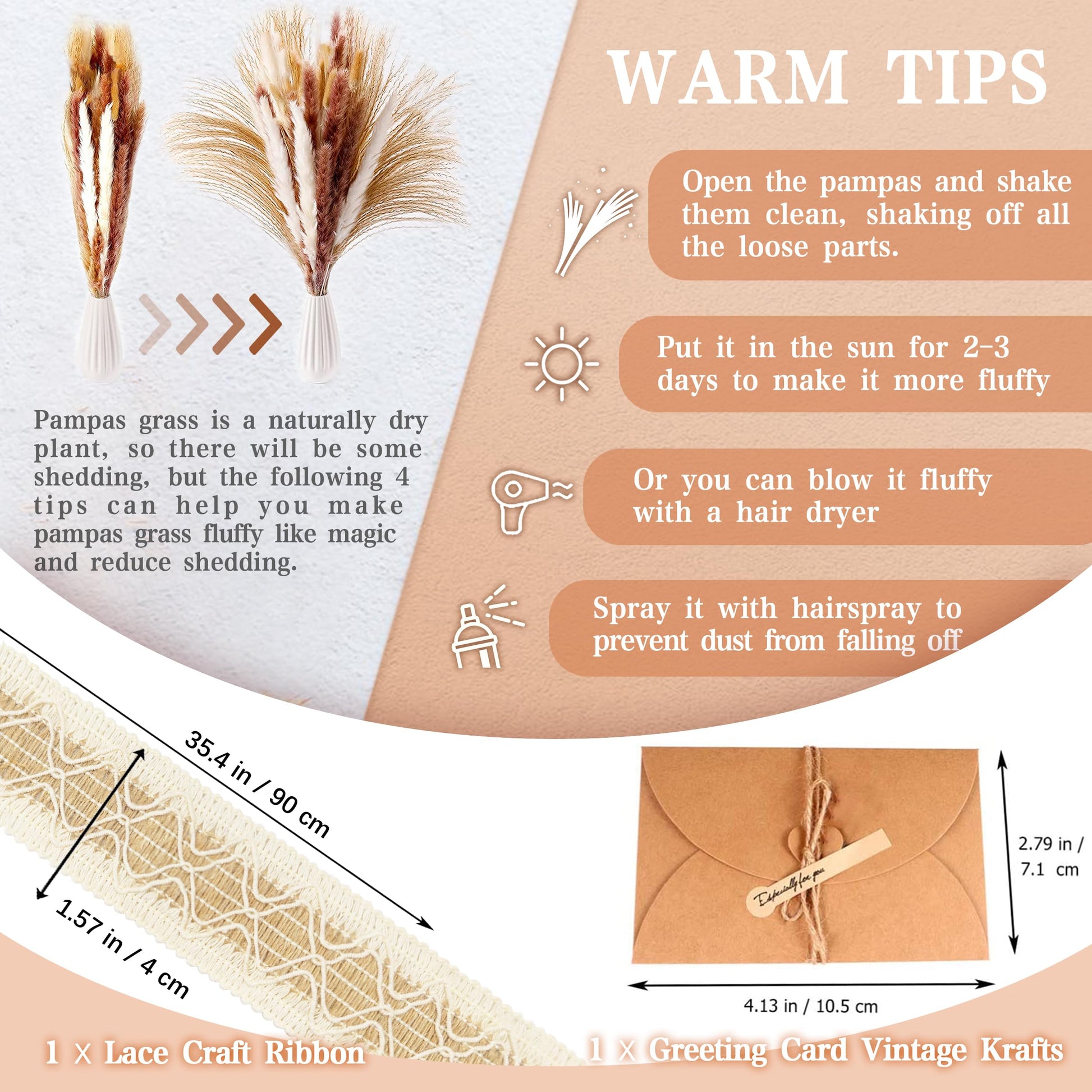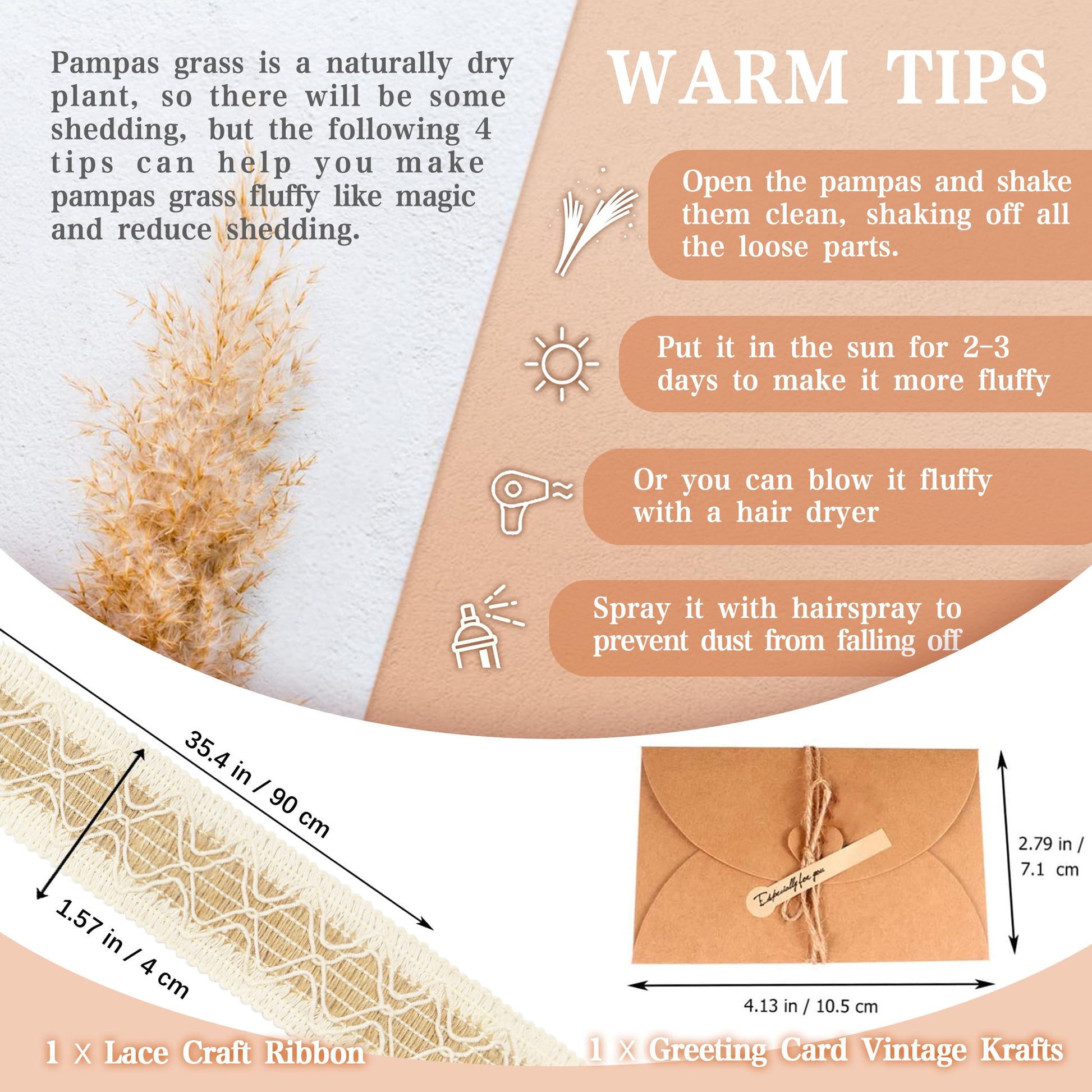 - 🌾Naturpampasgras: Sie erhalten Naturpampas und Weiße Pampas, Schilfgras und Kaninchenschwanzgras, mit 50 cm weißem Vintage-Spitzenband und Vintage-Kraftpapier-Grußkarten, Flauschig. Das Quirligen Pampas Gras wird Ihre Wohnung verschönern und Ihnen ein einzigartiges Dekorationserlebnis bescheren.