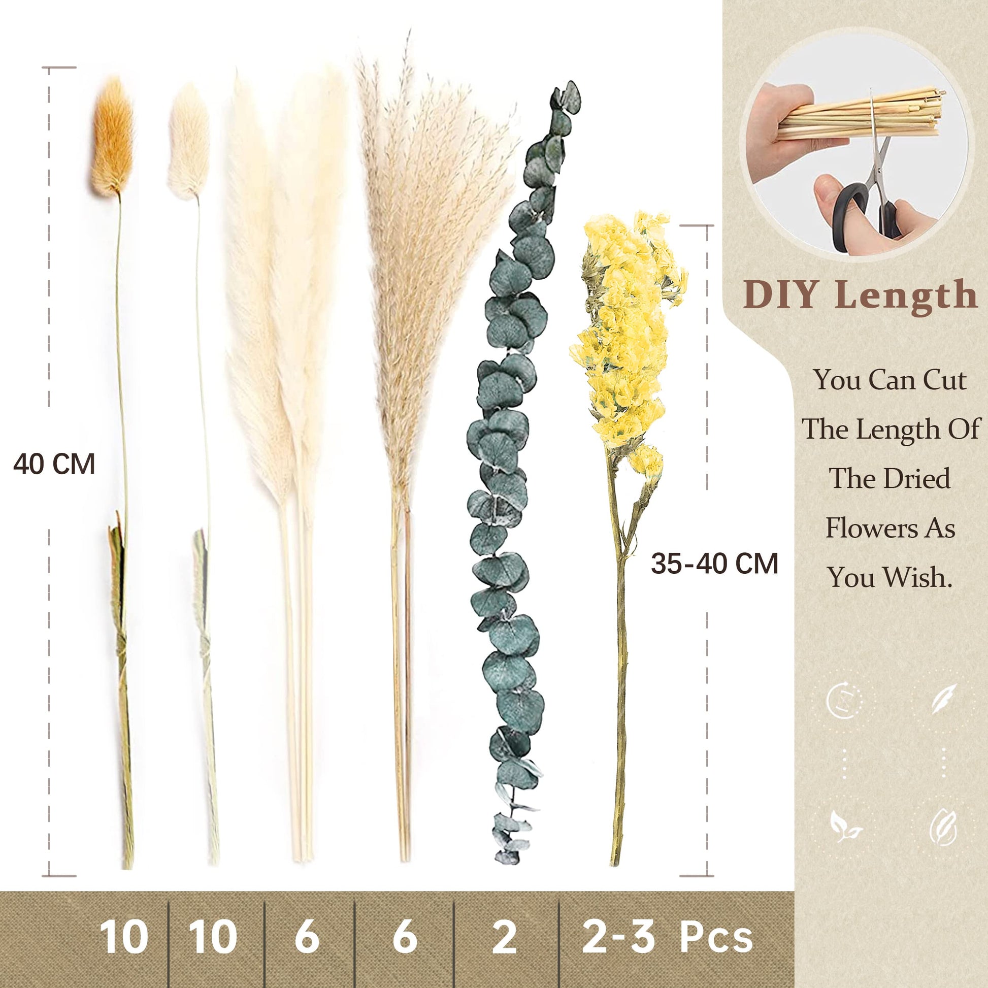 - 🌾Hochwertige Materialien: Natürliches Luftgetrocknetes, Ungiftiges und Ungefährliches 100% Echtes Flauschiges Getrocknetes Pampasgras! Die satten Farben Echter Blumen bleiben erhalten. Perfekte Höhe: Die Länge der getrockneten Blume beträgt ca. 40 cm, Sie können die Länge der getrockneten Blume nach Belieben zuschneiden, auf die gewünschte Größe kürzen und in Ihre Vase passen.