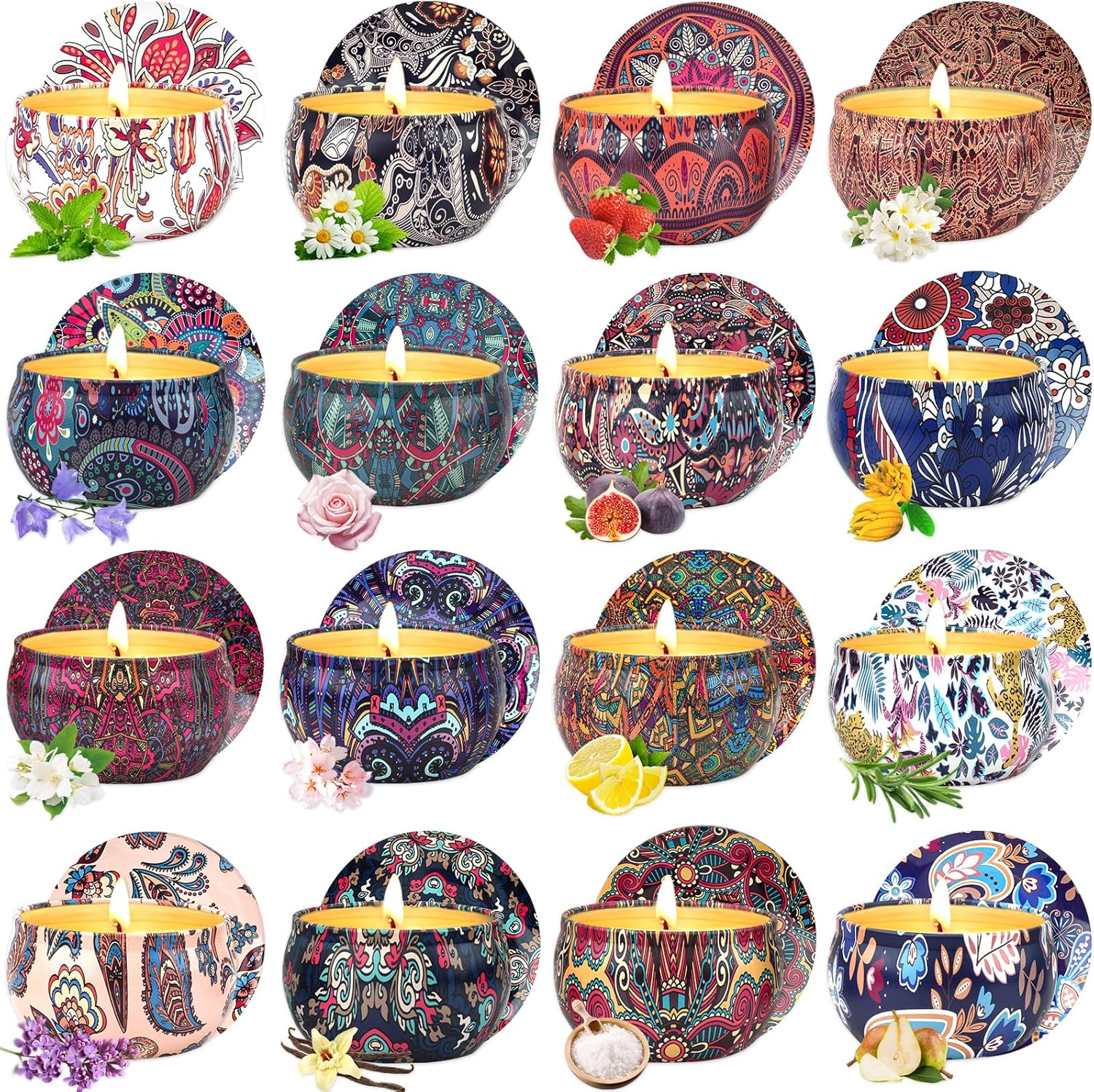 Duftkerzen für Frauen, Duftkerzen-Geschenkset, 16er-Pack Duftkerzen im Glas, 180 Stunden Brenndauer, 100 % Sojawachs
