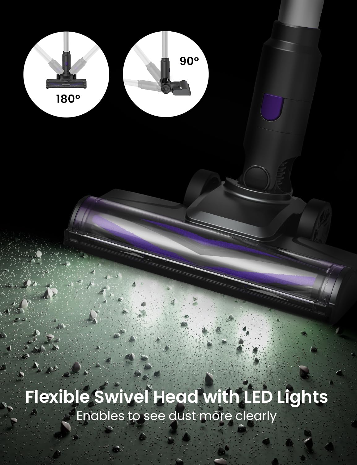 - 【DualGreen Dual-Grünlicht-Erkennungstechnologie】 Die Bodendüse des V15Max Staubsauger ist mit einem innovativen Grünlicht-Beleuchtungssystem ausgestattet, das auf beiden Seiten mit je 3 hochhellen LED-Chips bestückt ist und einen erheblich erweiterten Abstrahlwinkel bietet. Licht dieser speziell abgestimmten Wellenlänge lässt unsichtbaren Staub, Tierhaare und Feinstpartikel auf dunklen Böden konturscharf hervortreten. Selbst bei unzureichender Umgebungsbeleuchtung gewährleisten Sie so eine rückstandslose Reinigung und lassen Schmutz keine Chance.