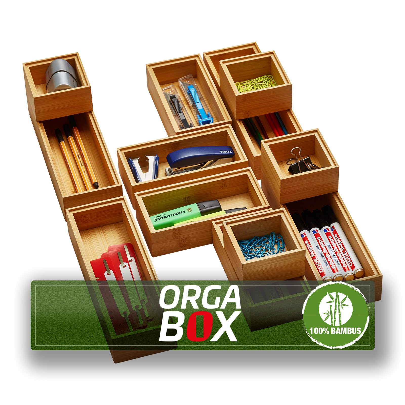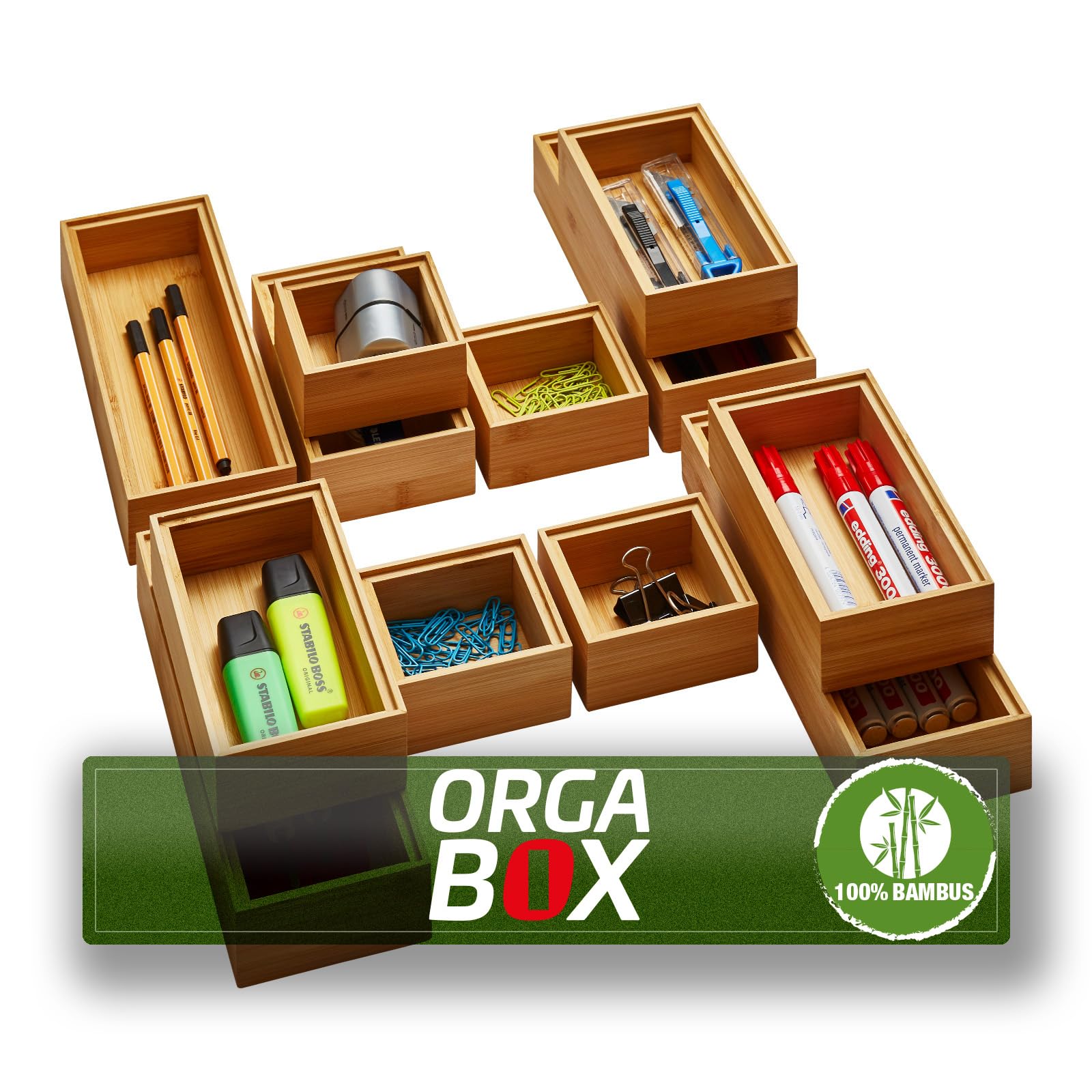 • ✅ Die ORGA-BOX Aufbewahrungsboxen verbinden Ästhetik mit Nachhaltigkeit und sorgen für aufgeräumte und übersichtliche Schubladen am Arbeitsplatz. Auch in der Küche oder im Badezimmer sind die Bambusboxen nicht nur ästhetisch ansprechend, sondern auch äußerst praktisch. Sie bieten eine übersichtliche Aufbewahrungsmöglichkeit für Gewürze, Küchenutensilien, Kosmetik und Make-up und sorgen dafür, dass alles stets griffbereit ist.