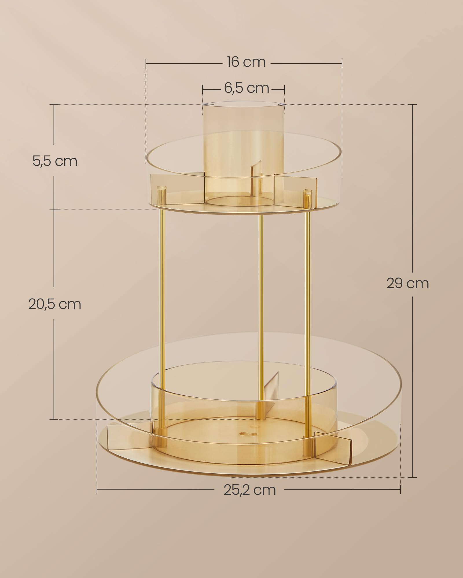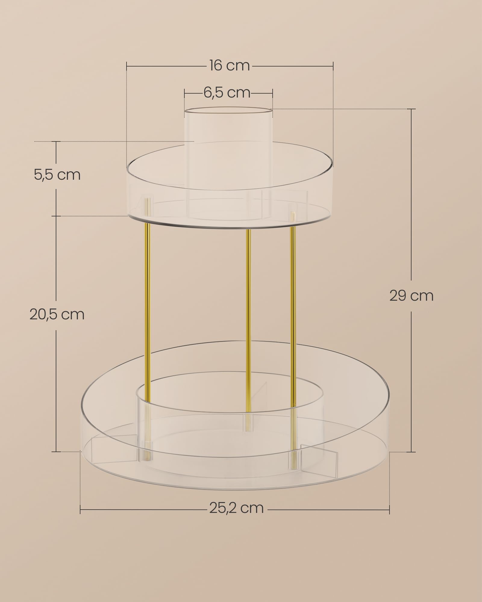 SONGMICS Make-up Organizer mit extra Tablett Oben, Kosmetik-Organizer rund 2 Ebenen