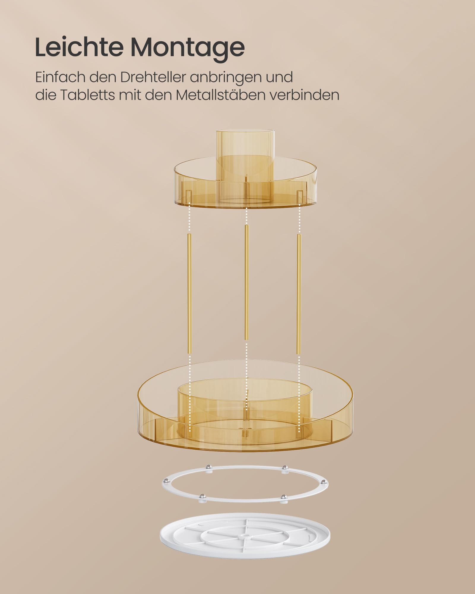 • 【EINFACHE MONTAGE】Kein Werkzeug erforderlich. Bringen Sie einfach den Drehteller an und verbinden Sie die Tabletts mit den Metallstäben. Die mitgelieferte detaillierte Anleitung sorgt für einen schnellen Aufbau, sodass Sie den Ständer sofort nutzen können
