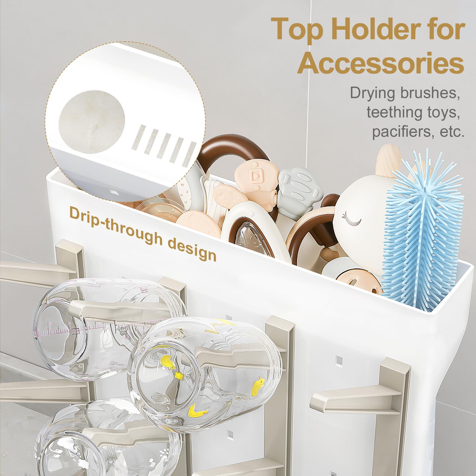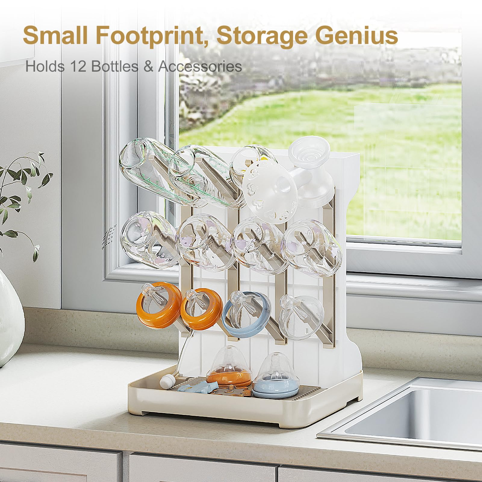 - Großes Abtropfgestell für Babyflaschen: Mit 12 Haken ist dieses Abtropfgestell perfekt zum Trocknen von Flaschen, Milchpumpenteilen und mehr. Es bietet problemlos Platz für Babyflaschen aller Größen, einschließlich Glasflaschen, und ist somit eine platzsparende Aufbewahrungslösung