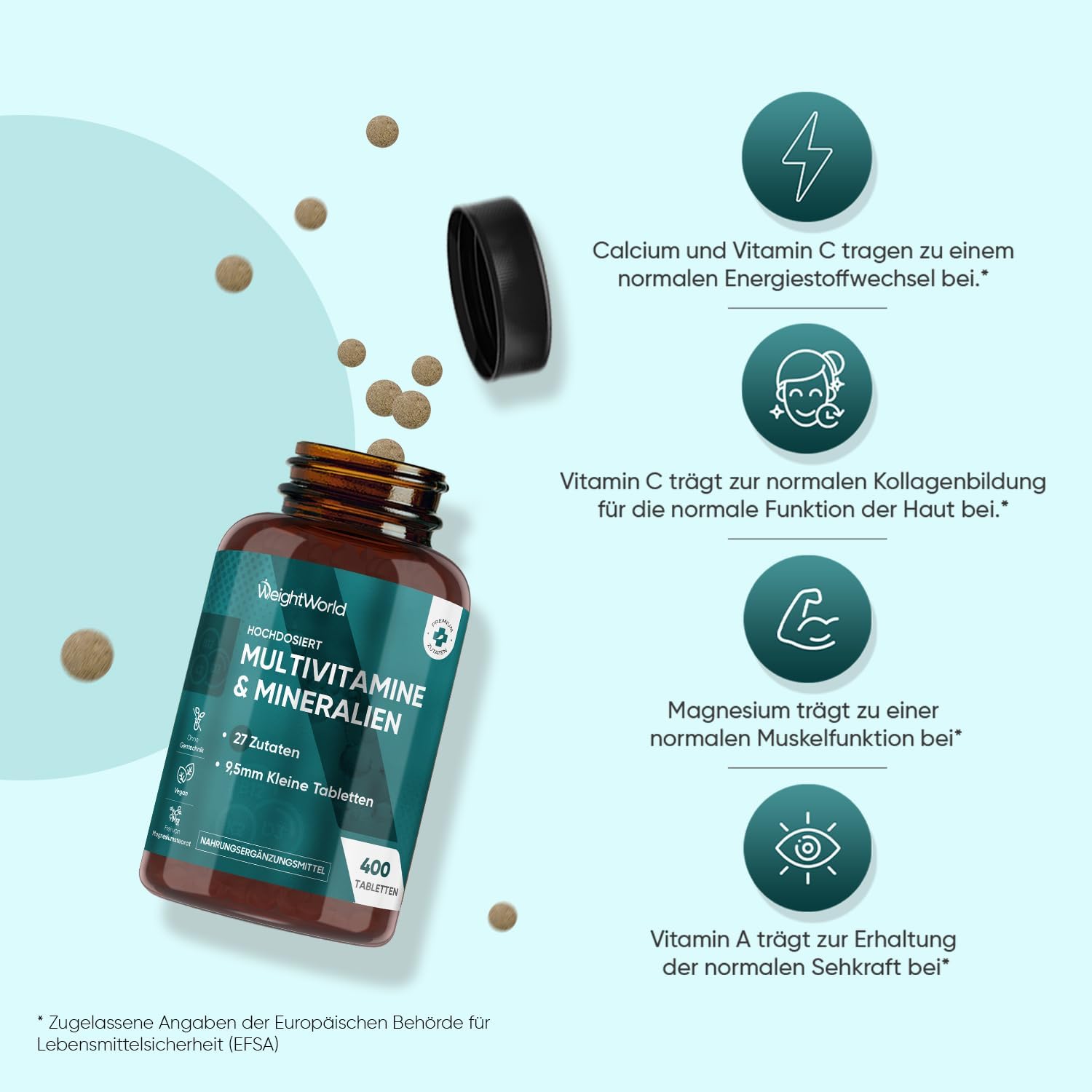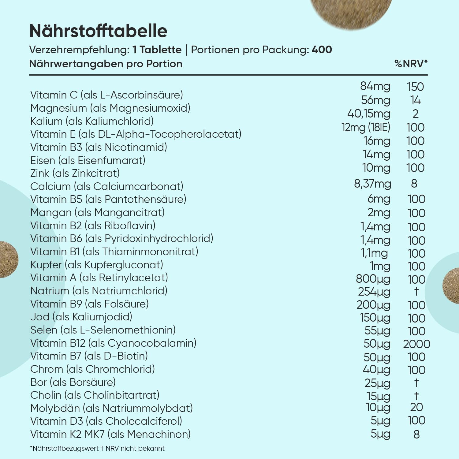 Multivitamin Tablets, 400 Vegan Pieces with 27 Vitamins and Minerals, Vitamin A to Z, Immune System, Energy and Metabolism (EFSA), Dietary Supplement for Men and Women