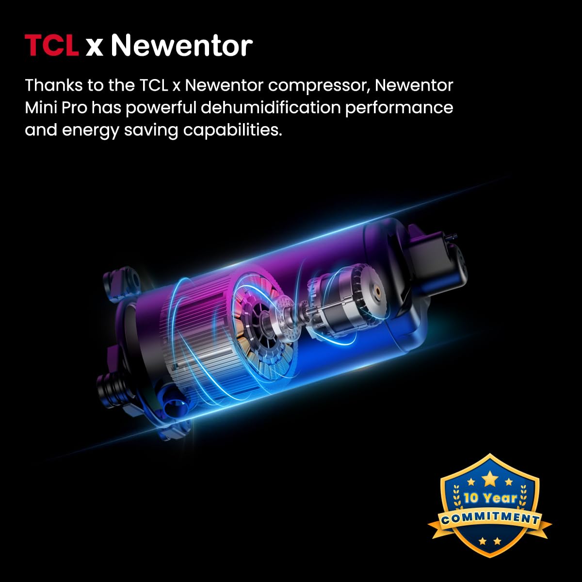 - TECHNOLOGIE DE DÉSHUMIDIFICATION RÉVOLUTIONNAIRE Ce déshumidificateur électrique utilise un compresseur TCL x Newentor intégré qui assure une déshumidification puissante et économe en énergie (seulement 190 W en moyenne). Il peut éliminer jusqu'à 12 litres d'humidité par jour dans des pièces de 25 m²/122 m³. La technologie avancée du compresseur de ce déshumidificateur électrique préserve l'environnement et réduit la consommation d'énergie tout en garantissant une déshumidification optimale.