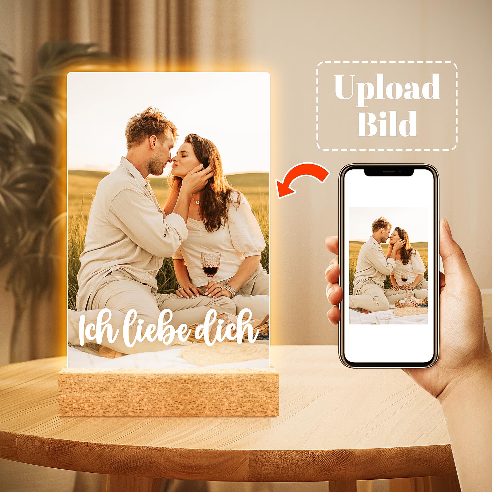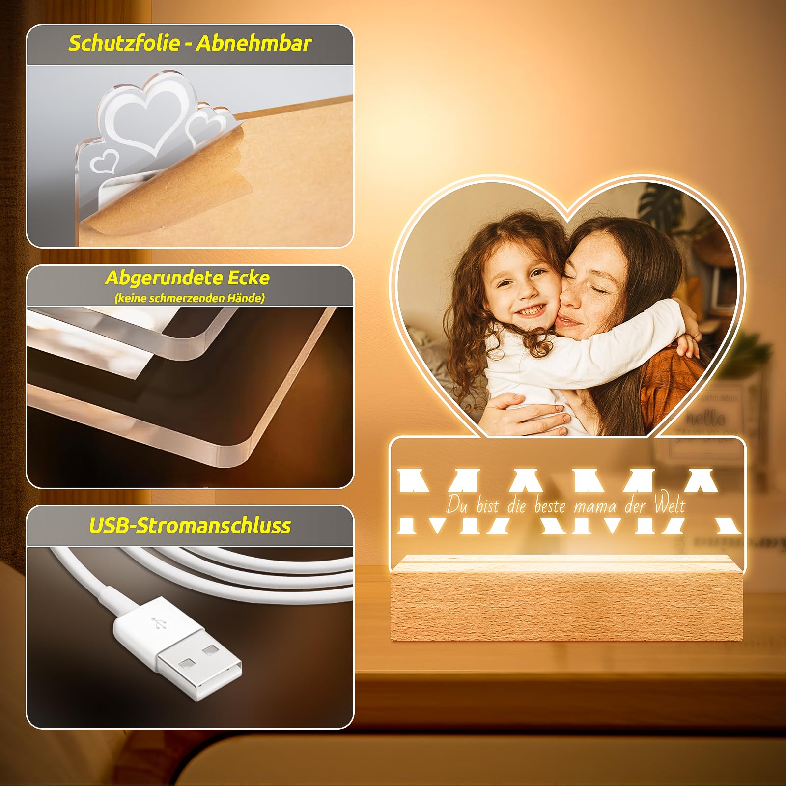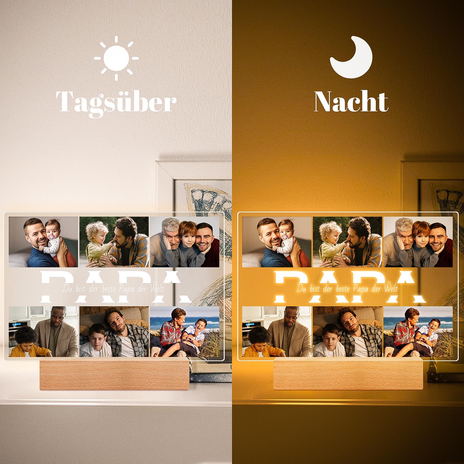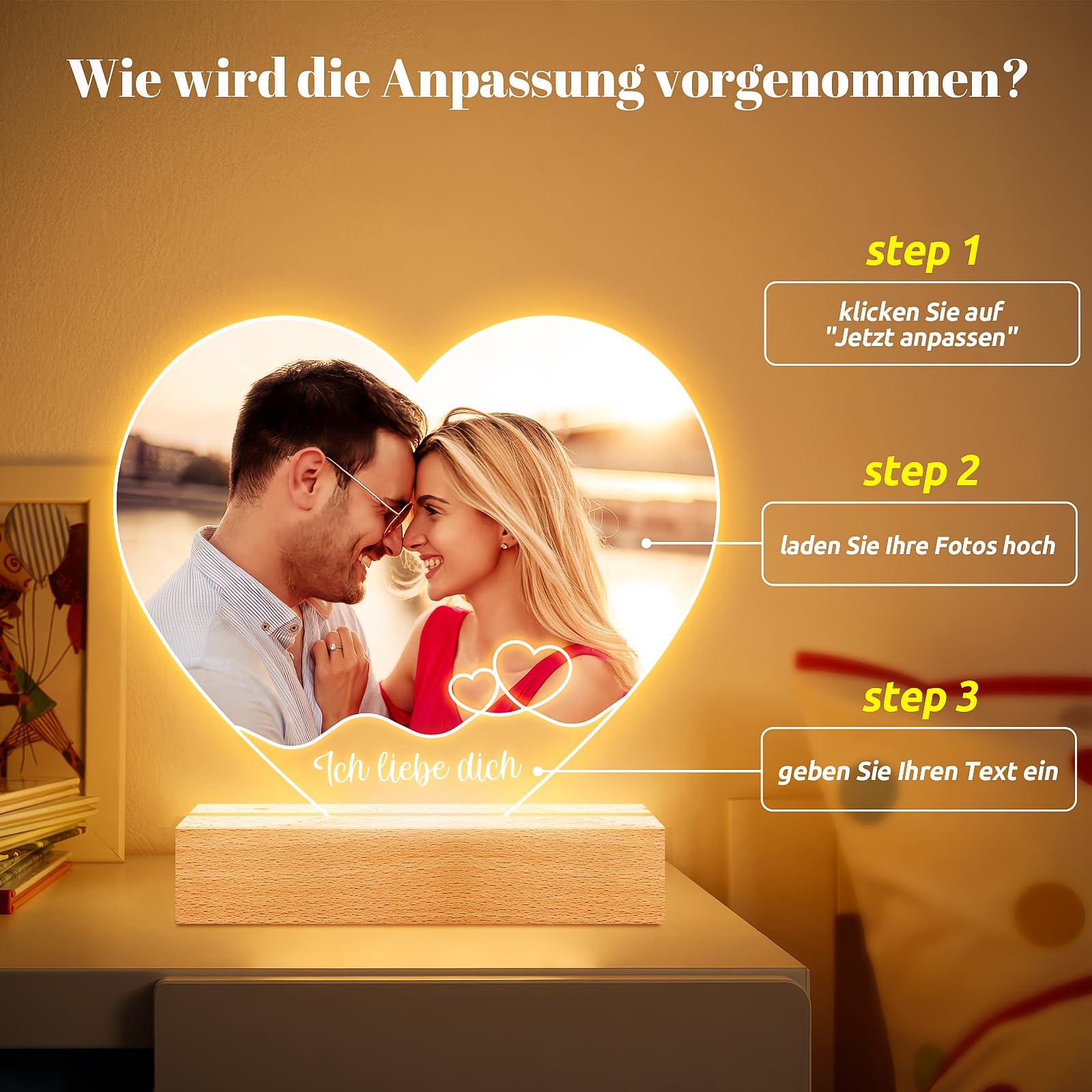 Cadeaux photo personnalisés - vous aide à personnaliser chaque photo et texte.Effet de lumière chaude - L'effet de lumière doux crée une atmosphère chaleureuse et romantique.Impression Ultra HD - Fabriqué avec la technologie d'impression UV pour une clarté photo inégalée.Matériaux de haute qualité - Fabriqué en verre acrylique de haute qualité avec jusqu'à 95% de transmission de la lumière.Attention aux détails - Le verre acrylique a un film protecteur sur sa surface qui gardera sa brillance.Installation facile Faites simplement glisser le cadre photo en acrylique dans la fente de base et vous êtes prêt à partir.