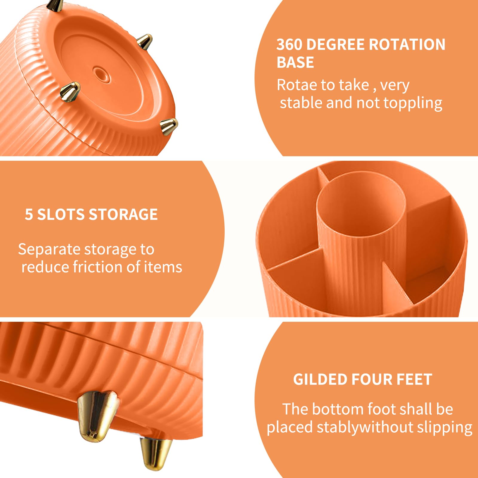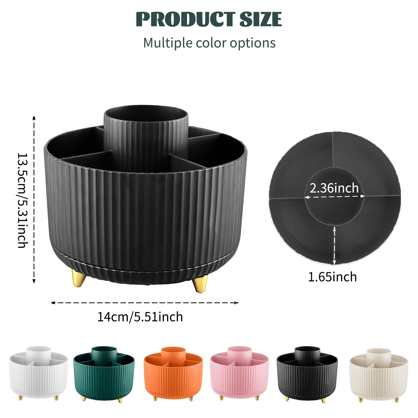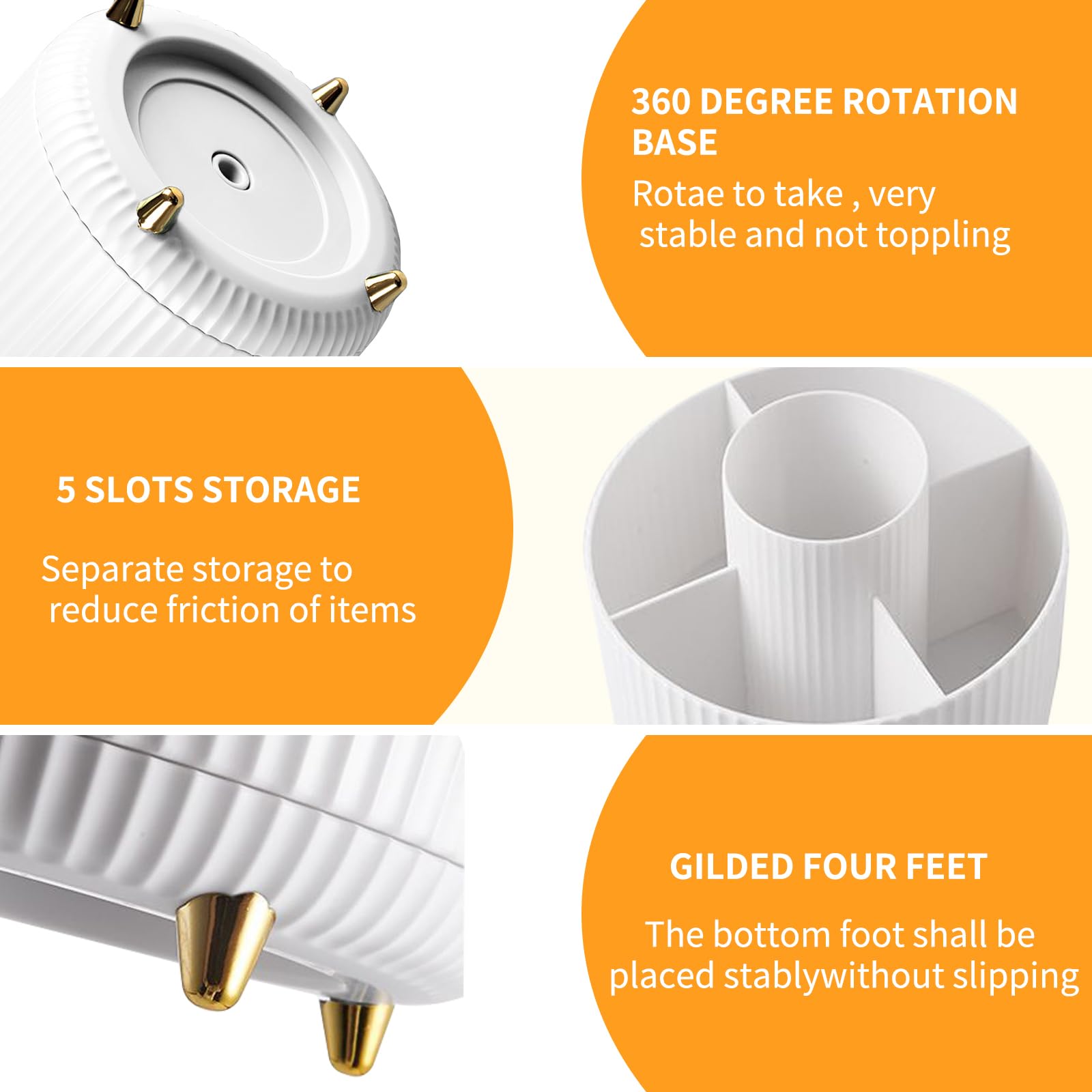 Make up Organizer 360° Drehbar, Pinselhalter Kosmetik Aufbewahrung mit 5 Fächern, Aesthetic Schminktisch Organizers für Zimmer Decor Frisiertisch