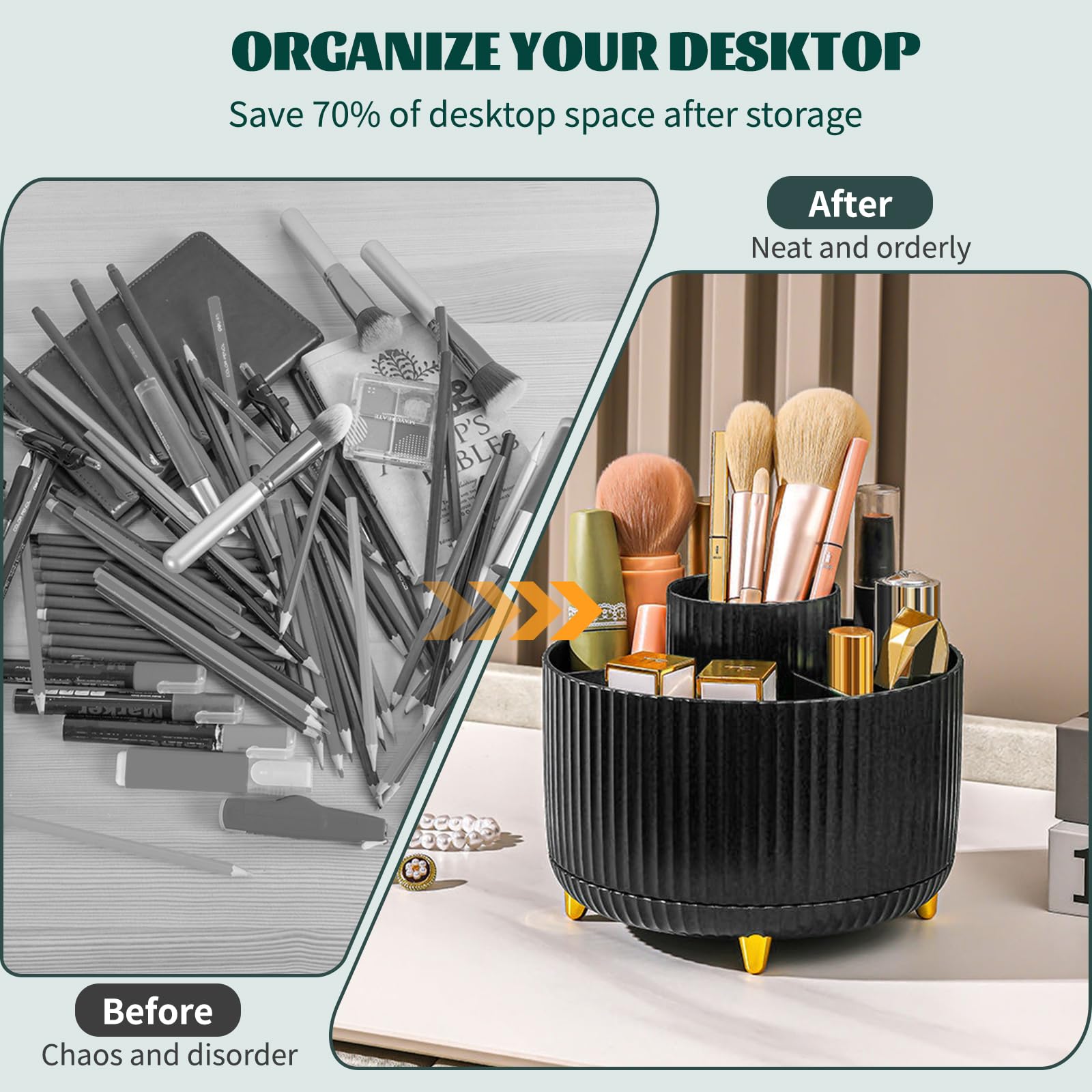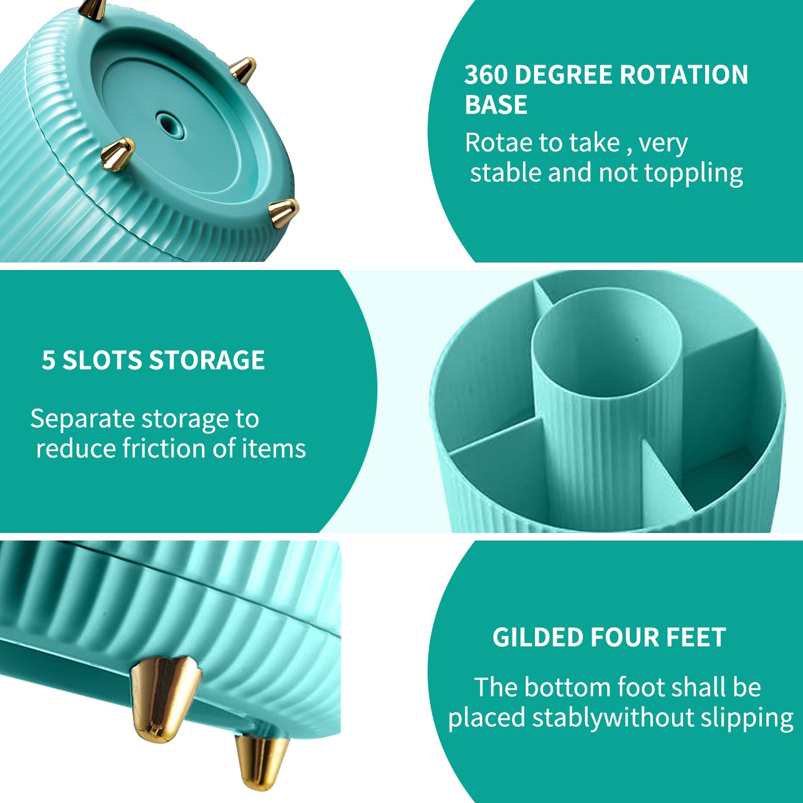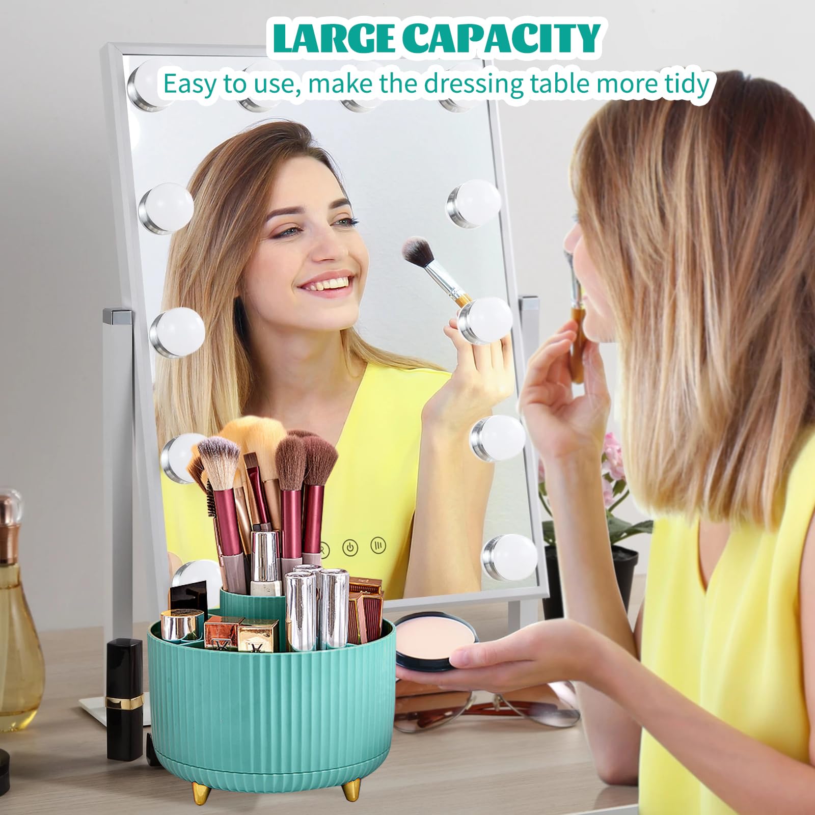 - 【360° drehbarer Schminktisch-Organizer】: Dieser Kosmetikpinselhalter kann um 360° gedreht werden, Sie können leicht sehen und Elemente aus allen Richtungen erhalten, müssen nur leicht den Make-up-Organizer drehen. Das hochwertige Roulette an der Unterseite macht die Drehung sehr gleichmäßig, stabil und einfach zu drehen