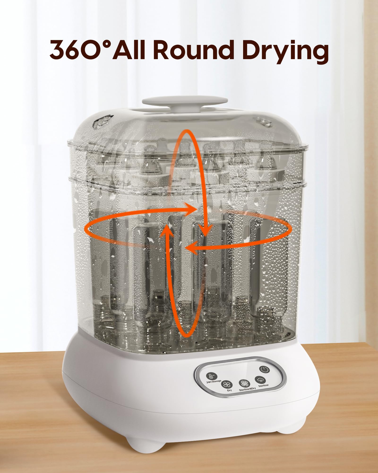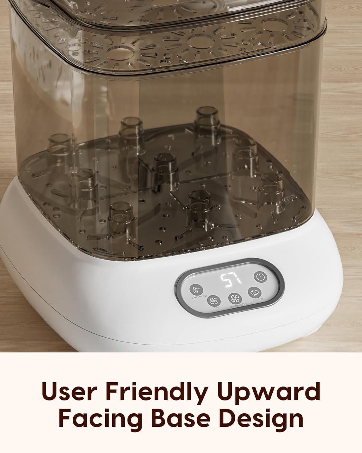 • ALL-IN-ONE STERILISATOR UND TROCKNER – Mit dem Gerät sterilisieren, trocknen, sterilisieren & trocknen und 24H aufbewahren Sie Babyflaschen und entspechendes Zubehör. Das Design – unabhängige Tasten für jede Funktion macht die Bedienung sehr einfach und effektiv. Anpassbare Timer-Einstellungen, um sie besser an Ihre Bedürfnisse anzupassen.