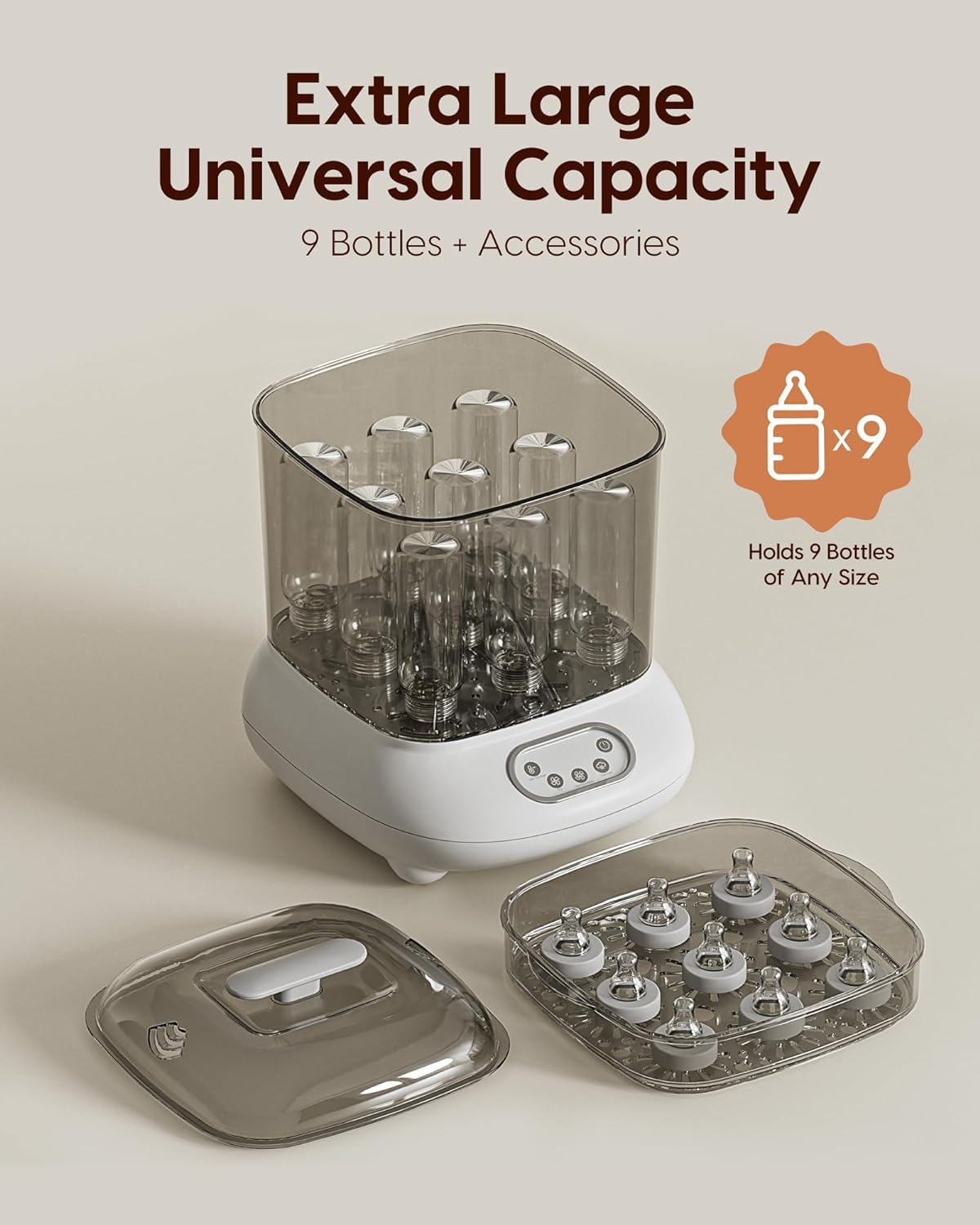 Babyflaschen-Sterilisator und Trockner, elektrischer Dampfsterilisator, größere Kapazität für 9 Flaschen