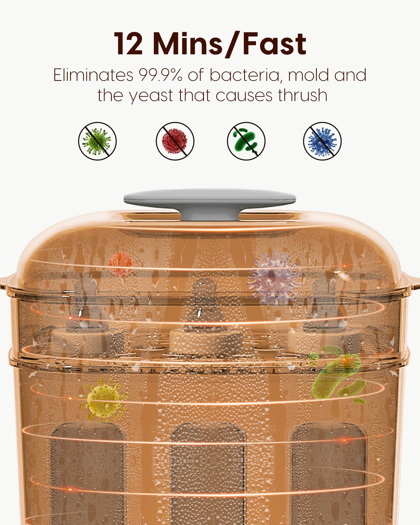 • TÖTET 99,9 % DER BAKTERIEN ganz ohne Chemikalien – Sterilisiert Babyflaschen und Zubehör effektiv mit 100 °C natürlichem Dampf. Die sterilisierten Falschen nach der Sterilisation bei ungeöffnetem Deckel können darin bis zu 24 Stunden lang keimfrei aufbewahrt werden.