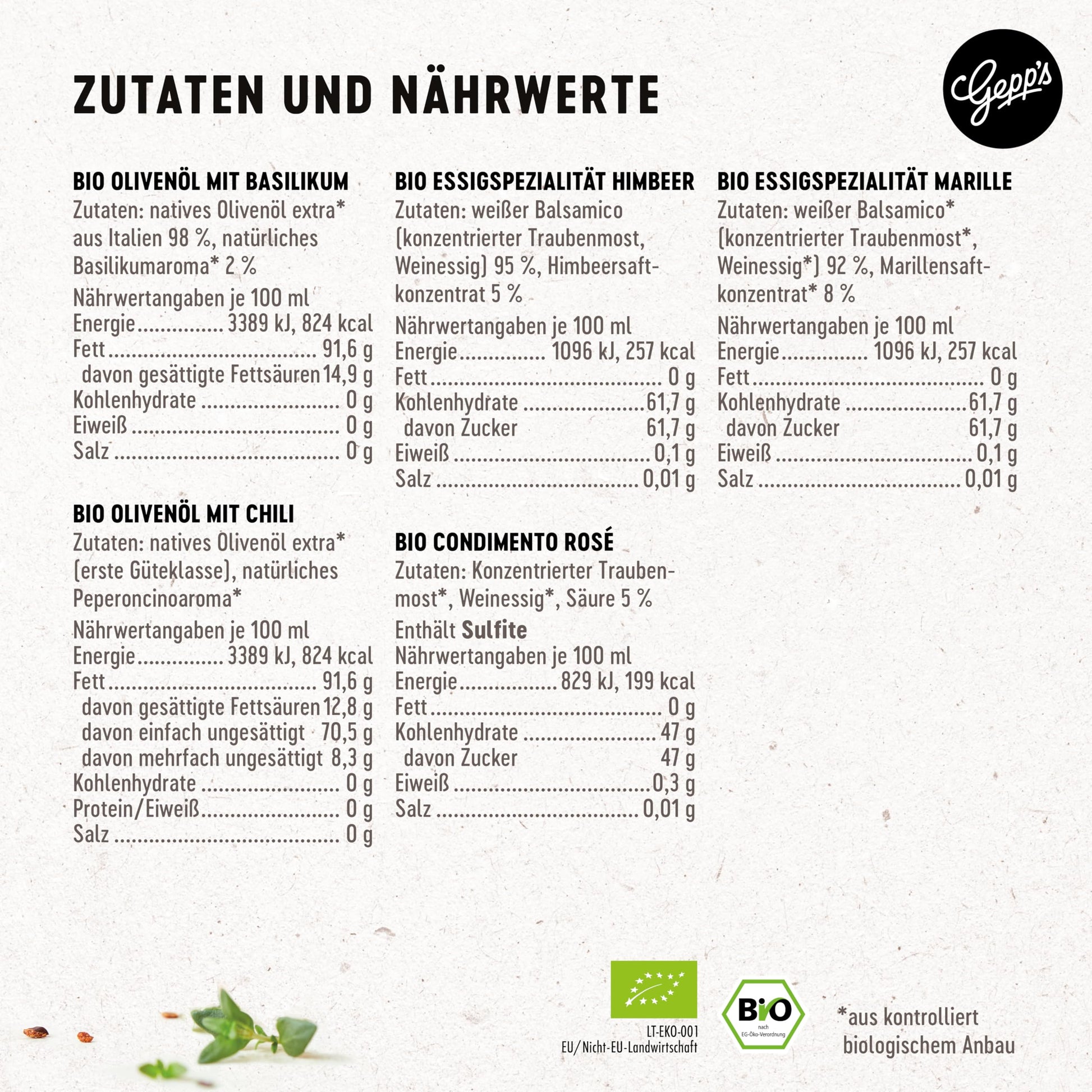 - Geschenk für Genießer: Das Gepp's Olivenöl-Set ist das perfekte Geschenk für jeden Anlass … Ob zum Geburtstag, als Gastgeschenk, zum Muttertag, Vatertag oder als kleines Mitbringsel für Erwachsene.