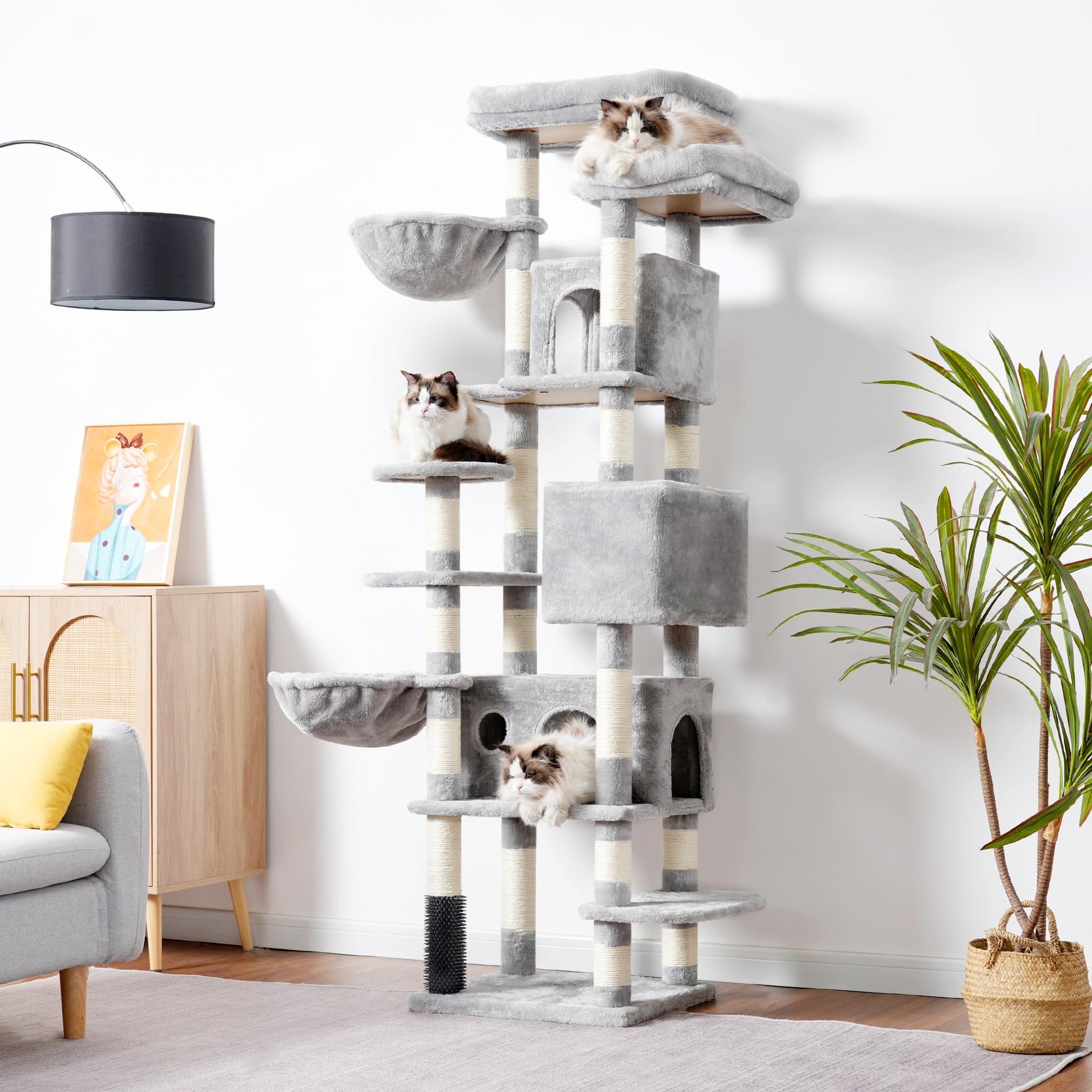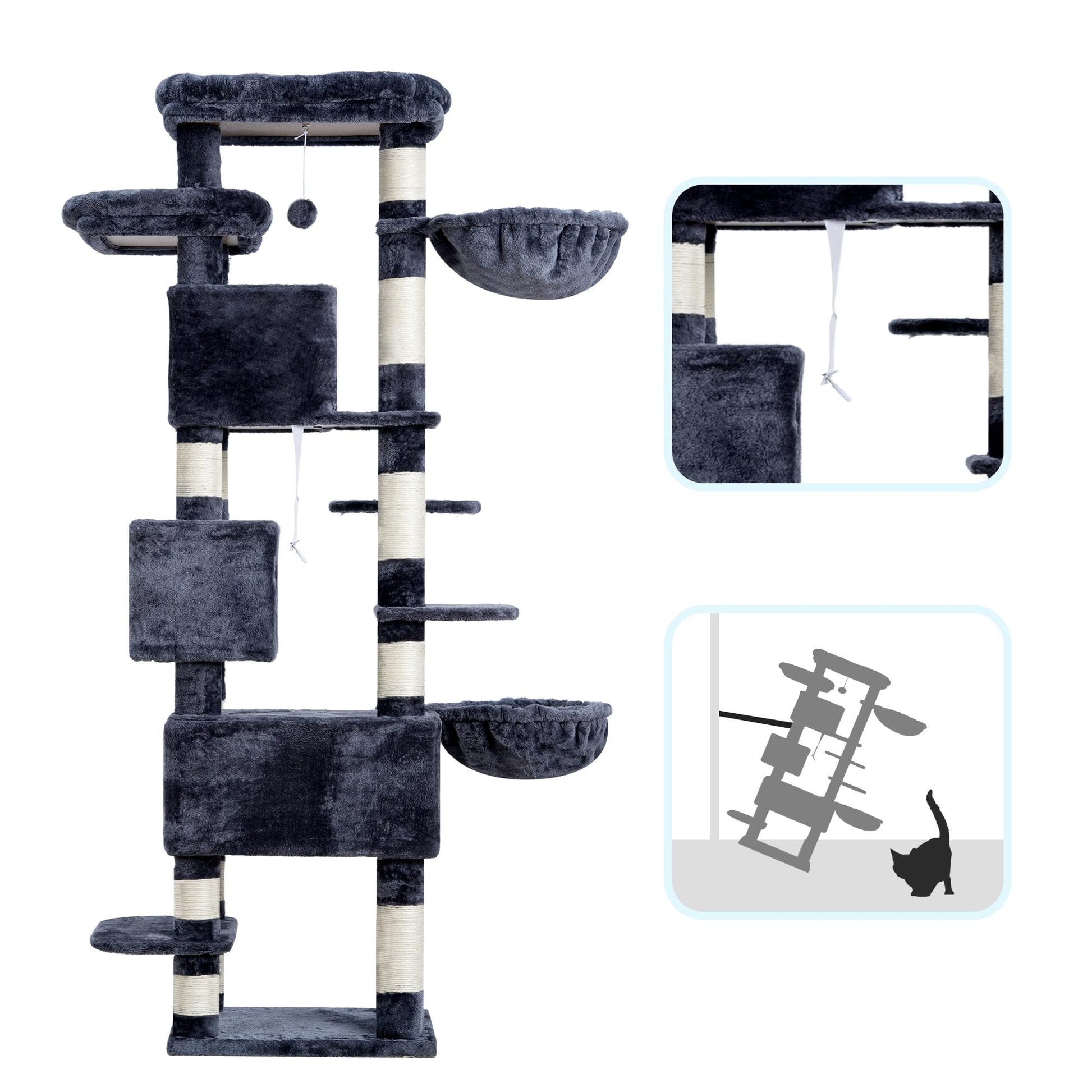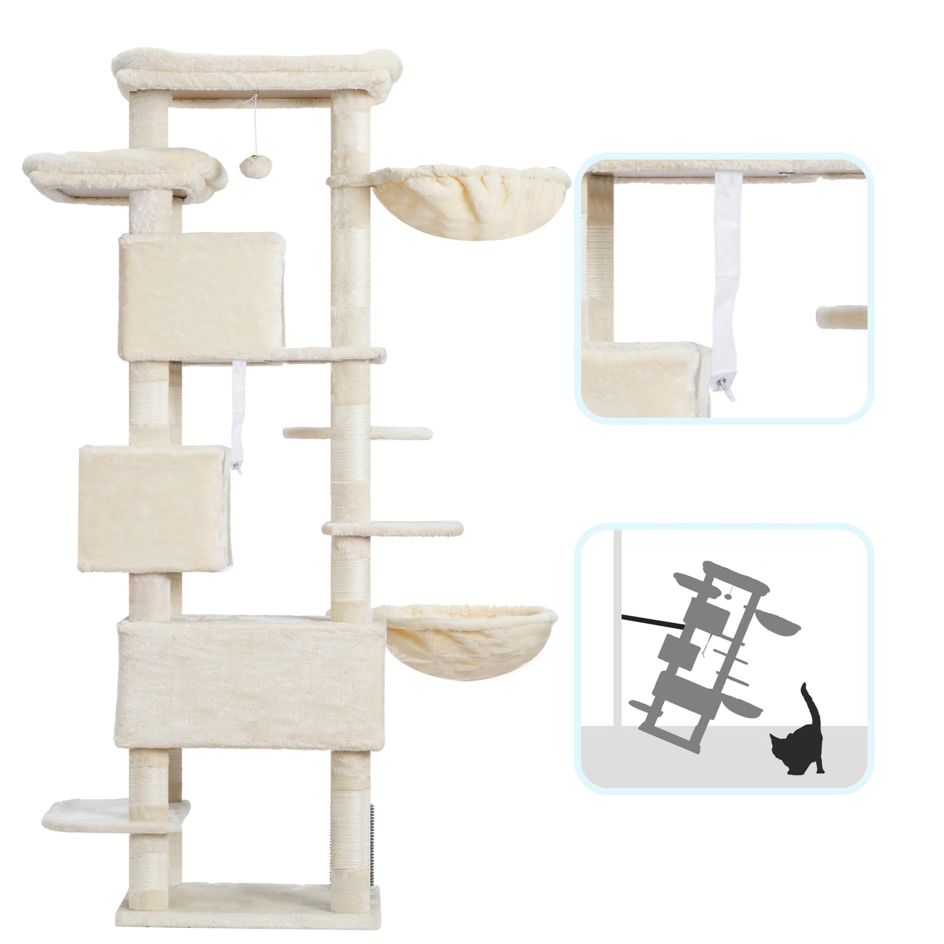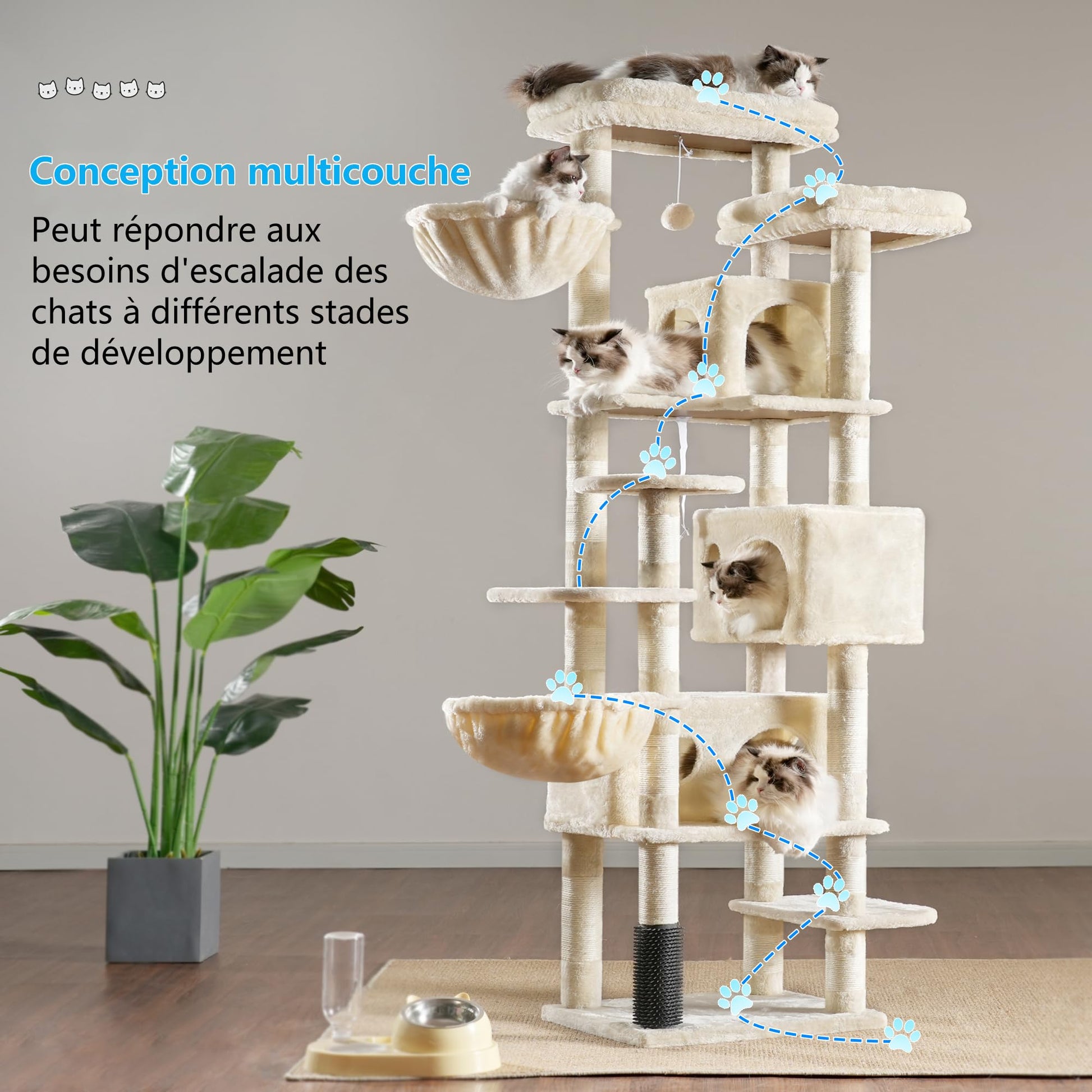 • Hoher Kratzbaum mit mehrstufigem Design: Der Katzenbaum ist 188 cm hoch und die Struktur ist so konzipiert, dass Katzen jeder Größe mit Leichtigkeit hoch und runter springen können.