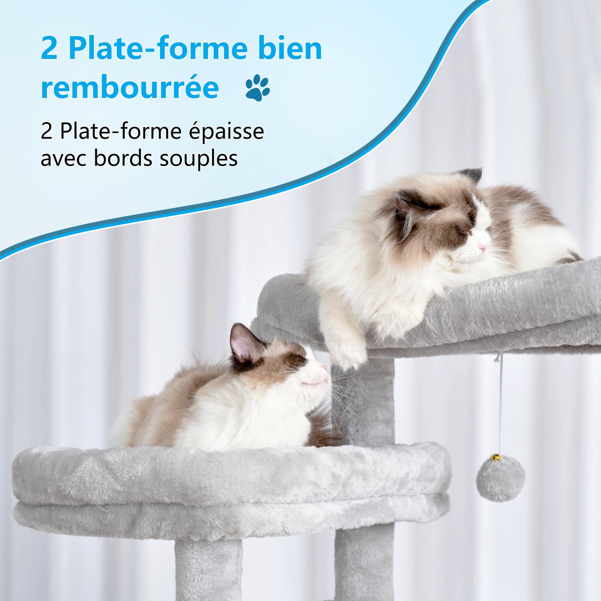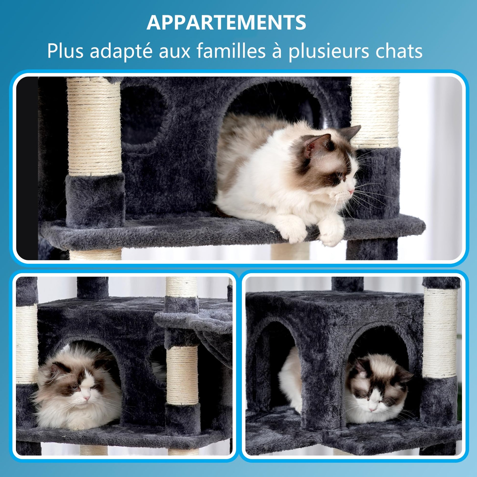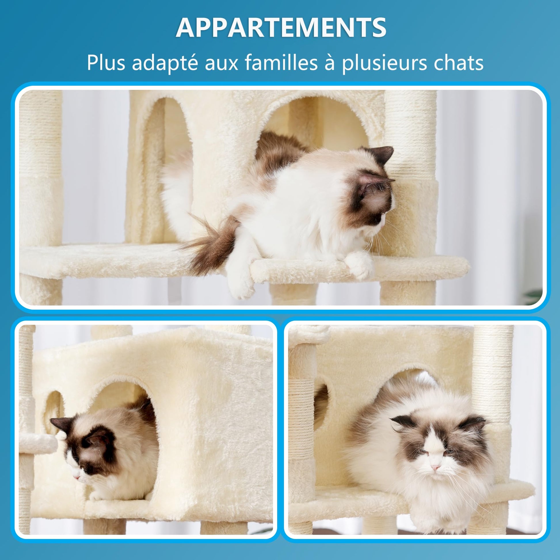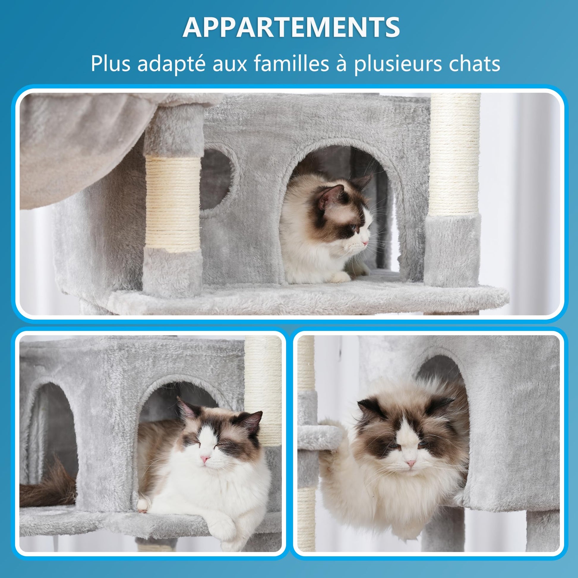 • Hoher Kratzbaum mit mehrstufigem Design: Der Katzenbaum ist 188 cm hoch und die Struktur ist so konzipiert, dass Katzen jeder Größe mit Leichtigkeit hoch und runter springen können.