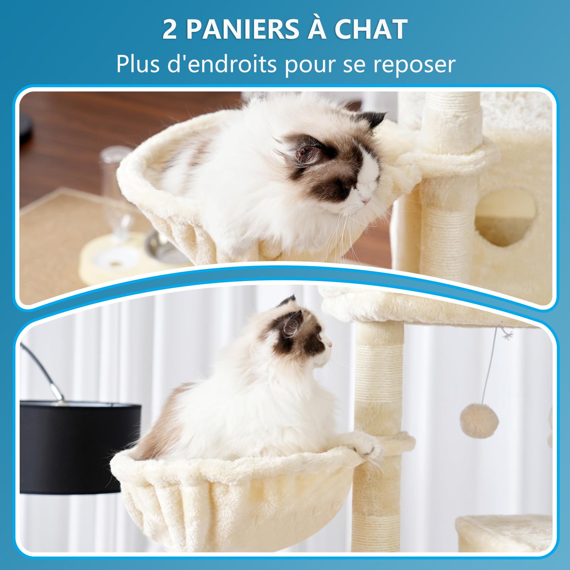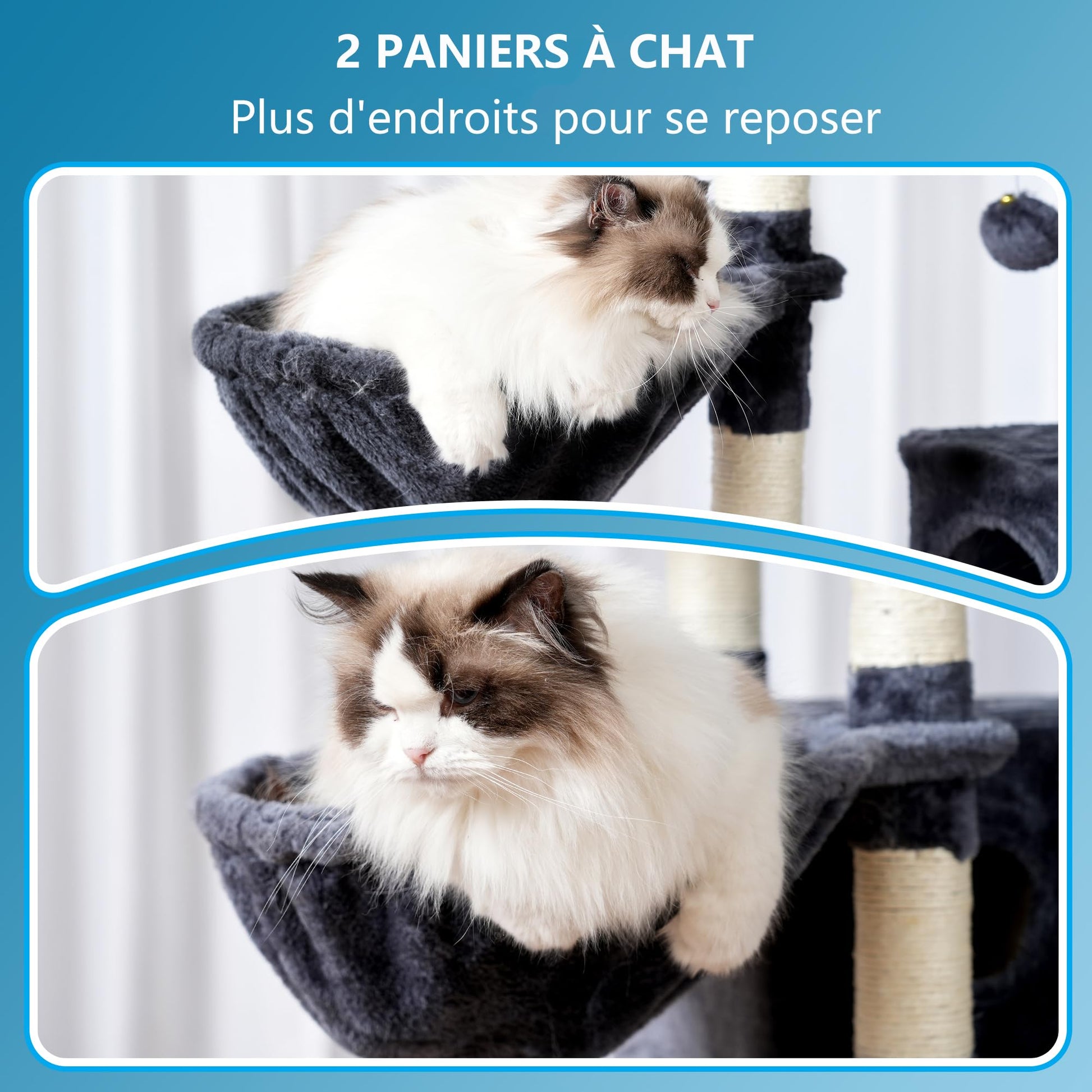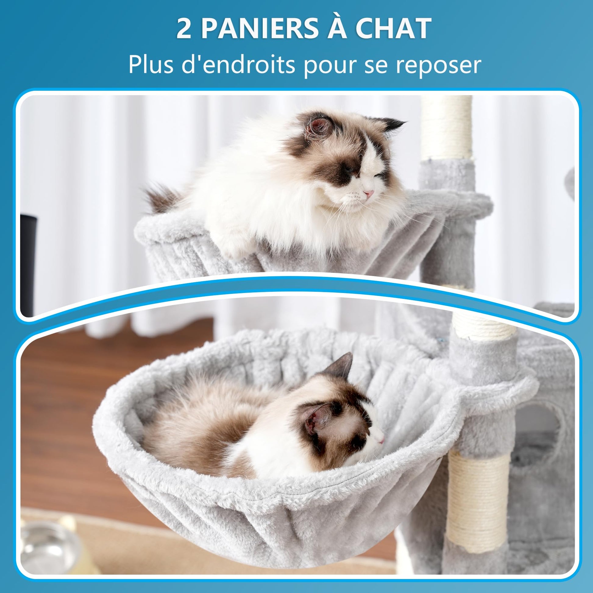 XXL Kratzbaum mit 2 großen Plattformen, 3 Höhlen, 2 Körben, Plüschbälle und Sisal-Kratzbäumen