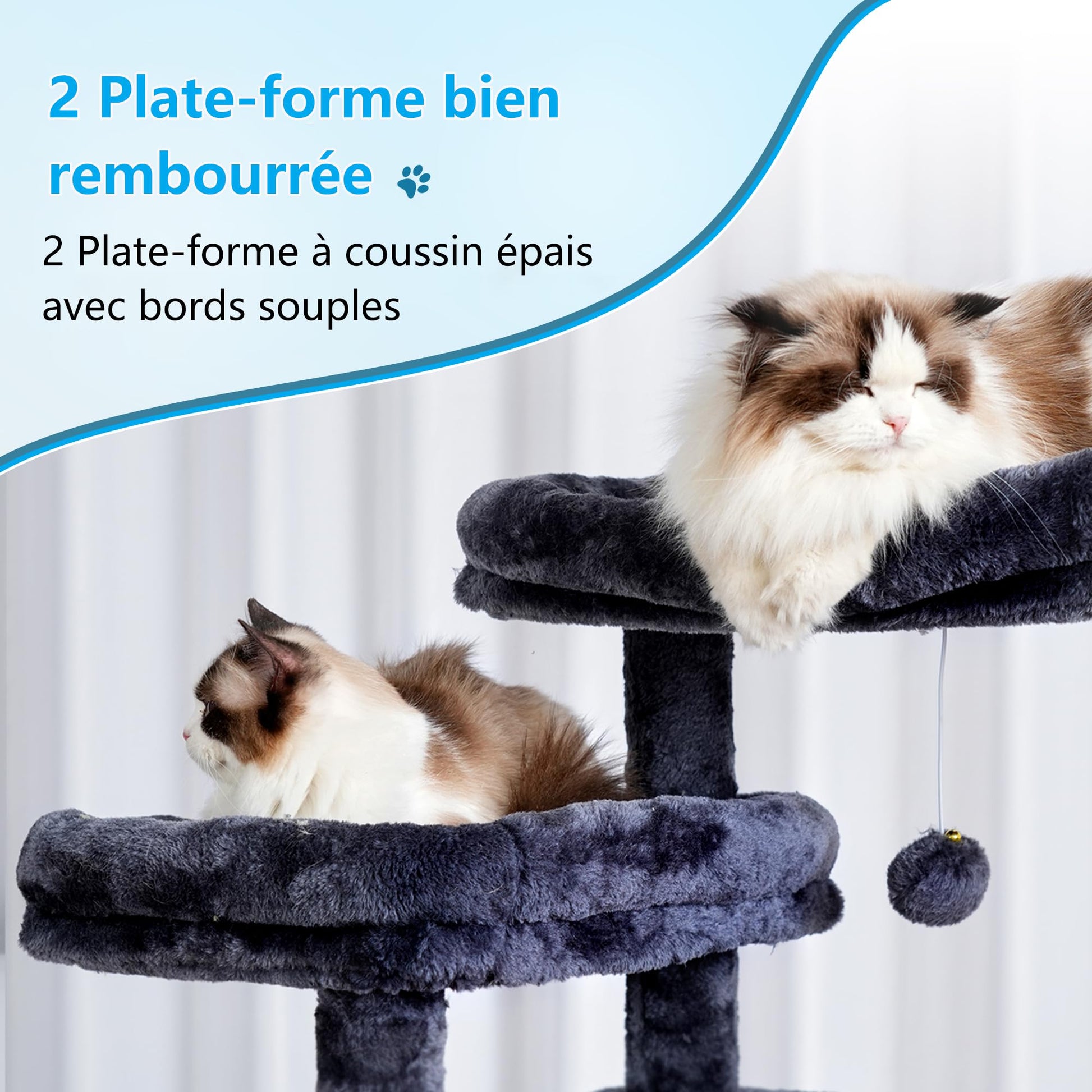 • Gemütliches Zuhause zum Unterhalten: 3 geräumige Eigentumswohnungen bieten luxuriöses Nickerchenerlebnis; 2 Plüschsitzstangen mit erhöhtem Rand ermöglichen mehr Sicherheit für Katzen, um das Gefühl der Weltspitze zu genießen, während sie sich ausruhen; 1 interaktiver Glitzerball zum Spielen, mehrere Schichten Layout zum Klettern auf und ab.