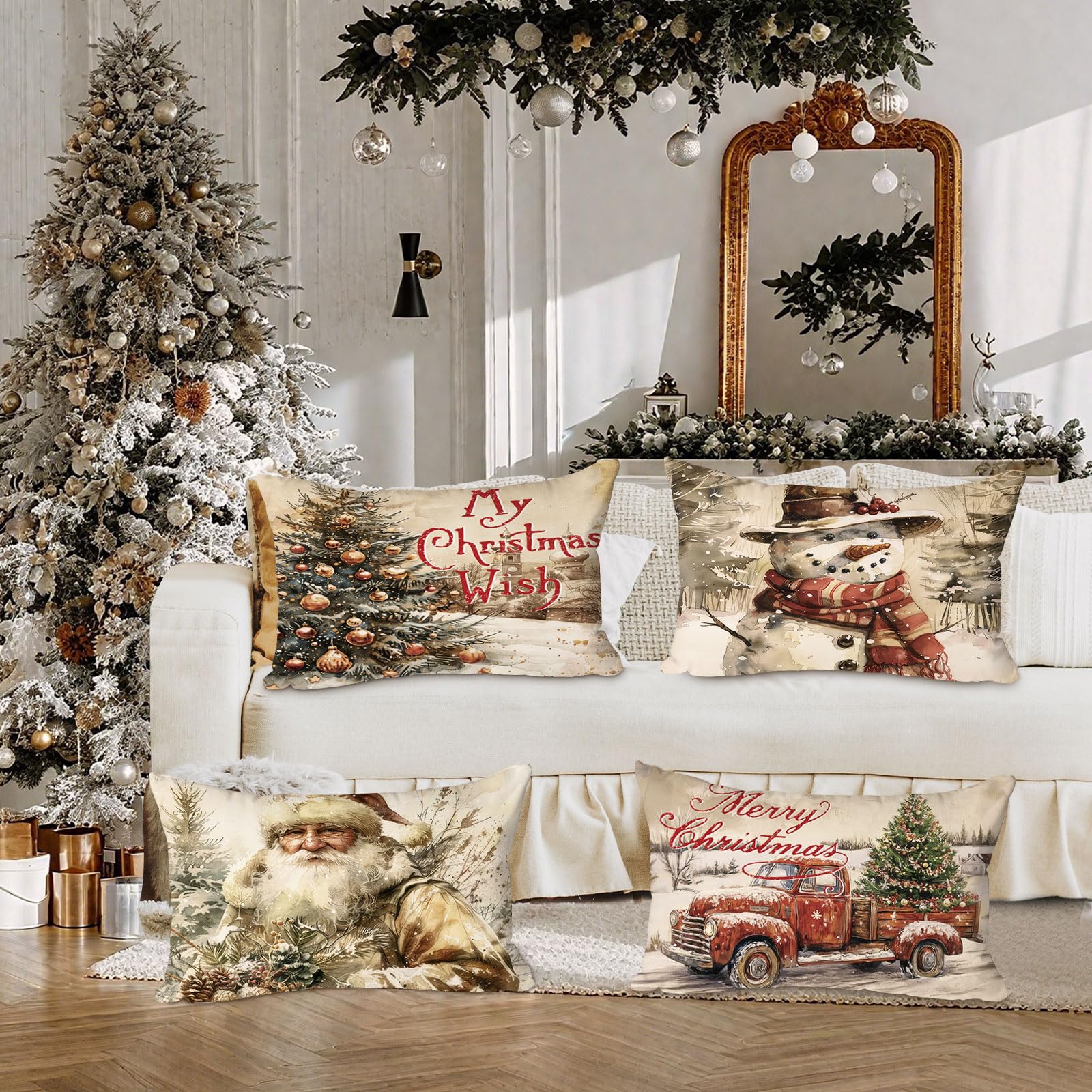 Lanpn Weihnachten Kissenbezug 4 stück, Weihnachtskissenbezug, Kissenbezüge für Winter Heim Schlafzimmer Wohnzimmer Sofa Couch