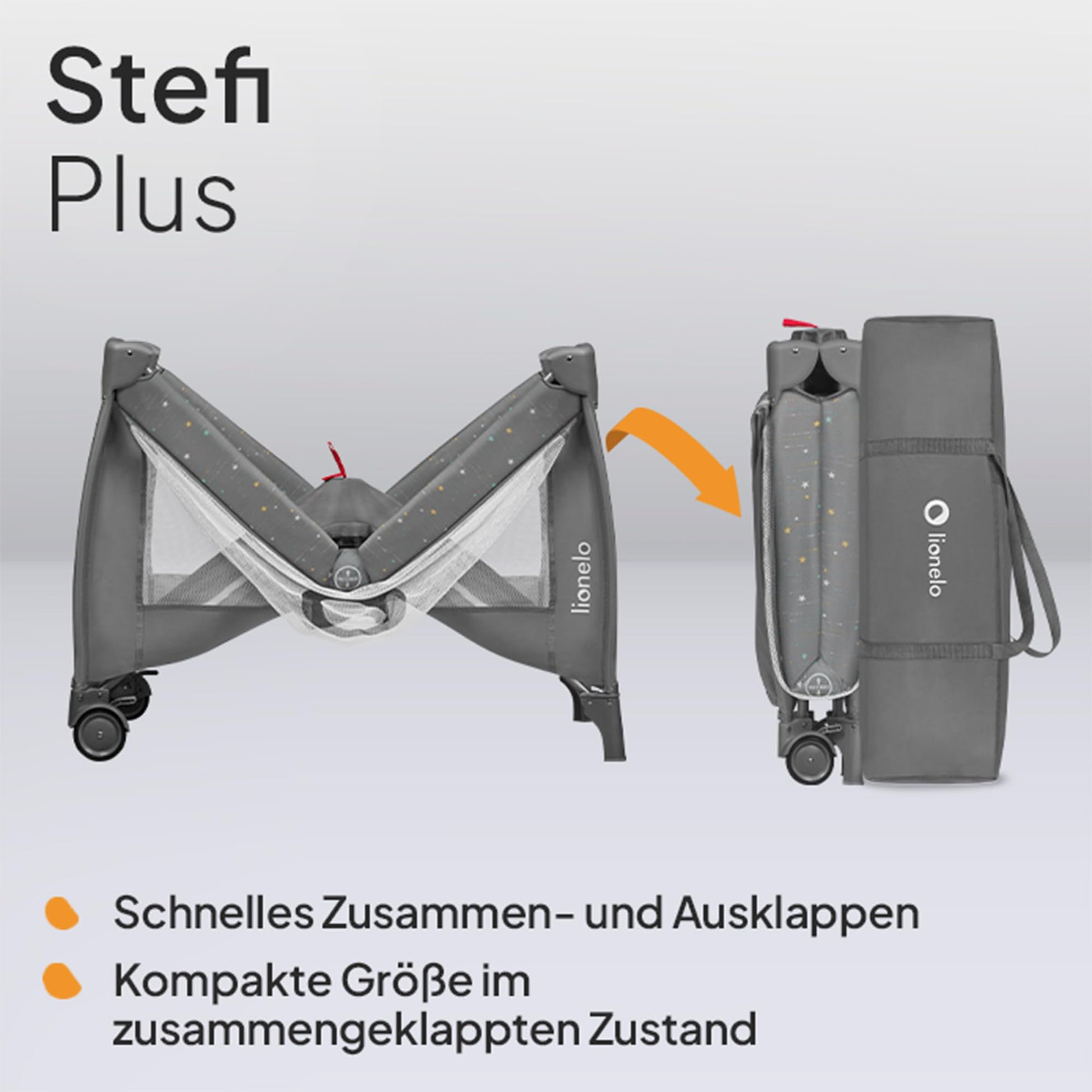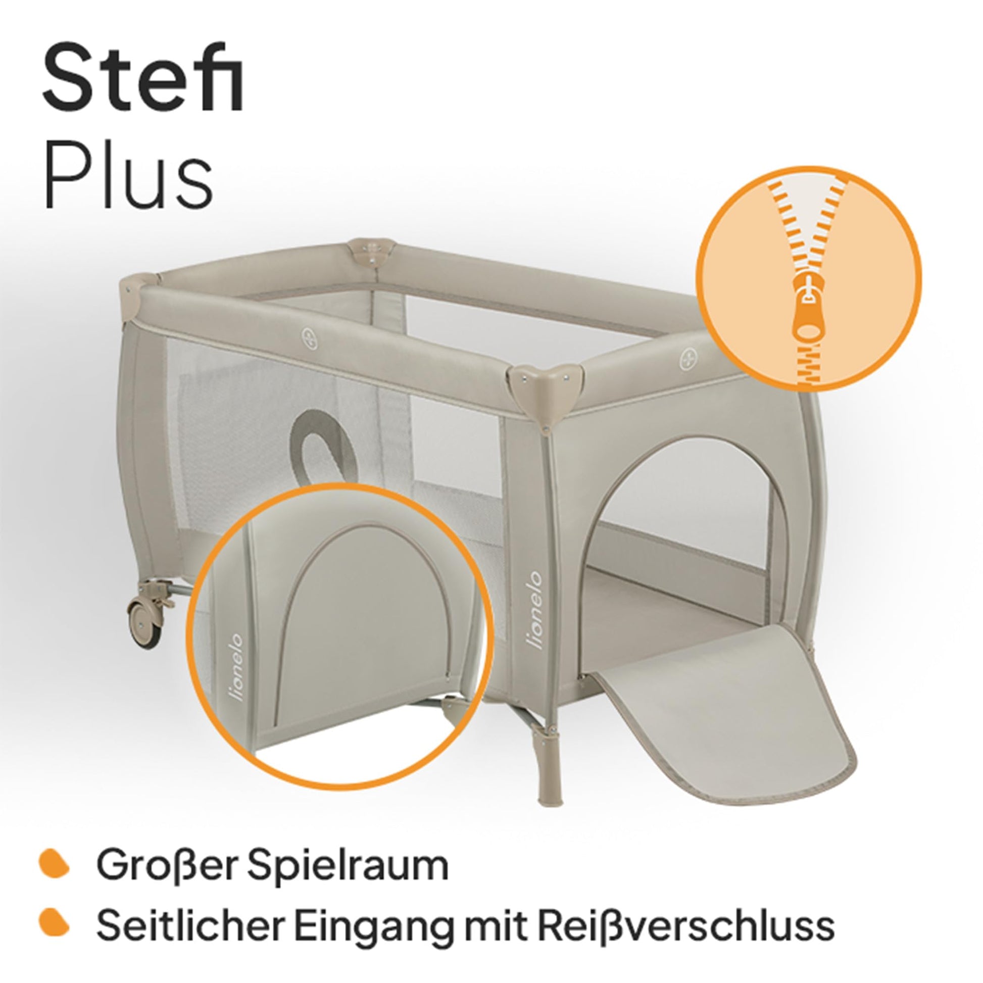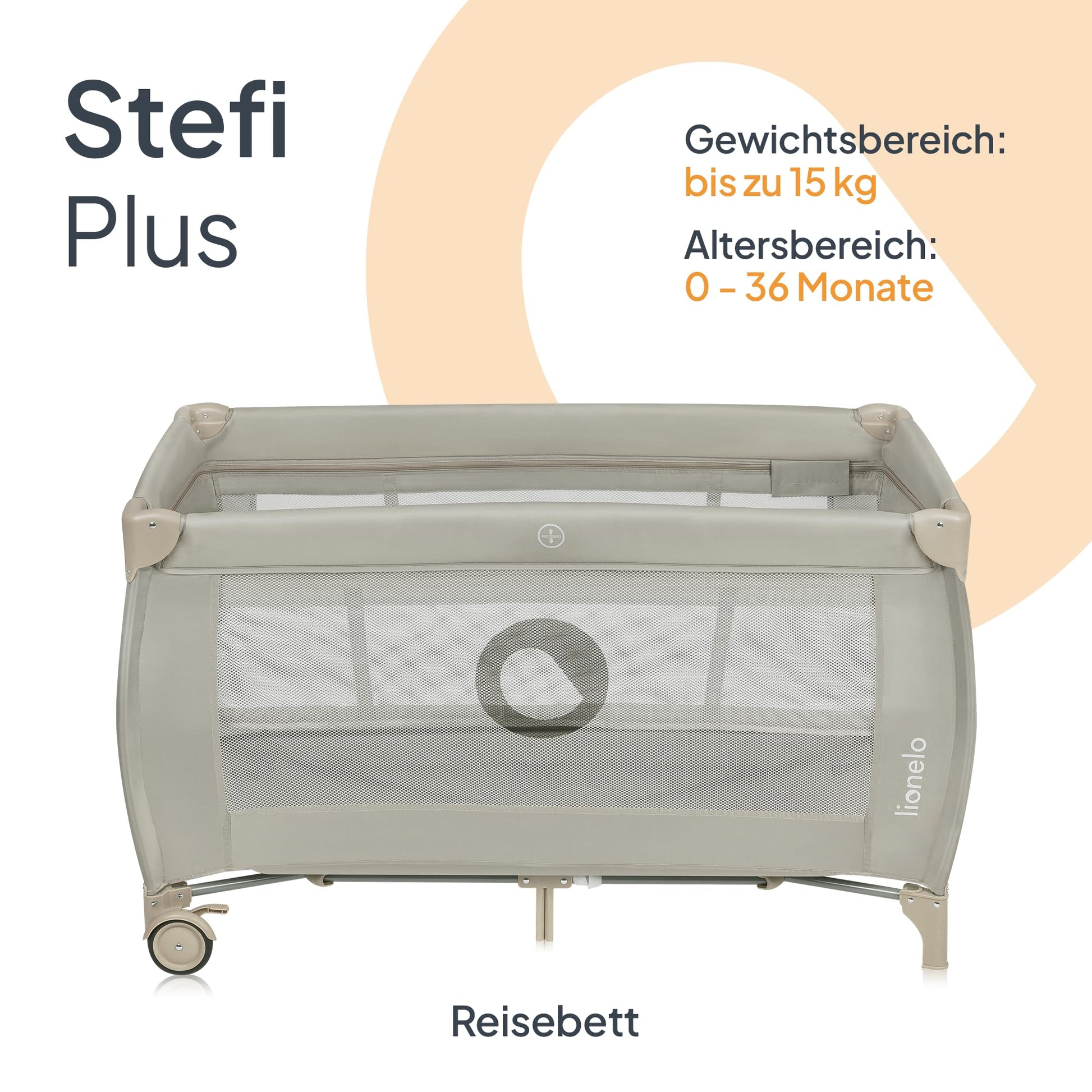 • INNOVATIVE MATRATZE: Im Reisegitterbett Stefi Plus wird eine neue Matratze aus 2 cm dickem T25-Polyurethanschaum verwendet, die die Wirbelsäule richtig richtet. Das Material ist verformungsbeständig und sorgt so für die richtige Unterstützung der Schlafposition des Kindes und für Wärmeisolierung. Die Matratze kann auf zwei Stufen eingestellt werden: niedrig und hoch