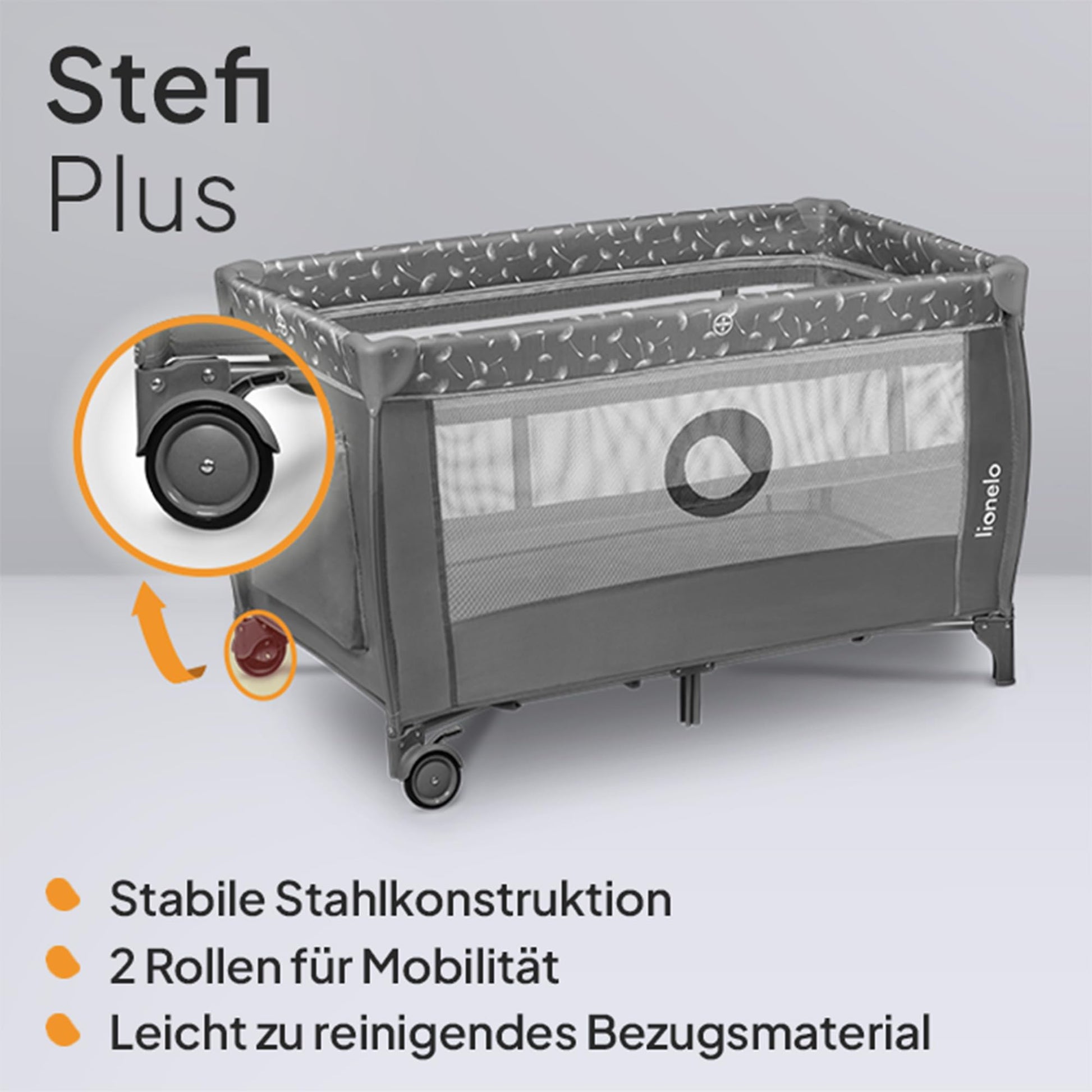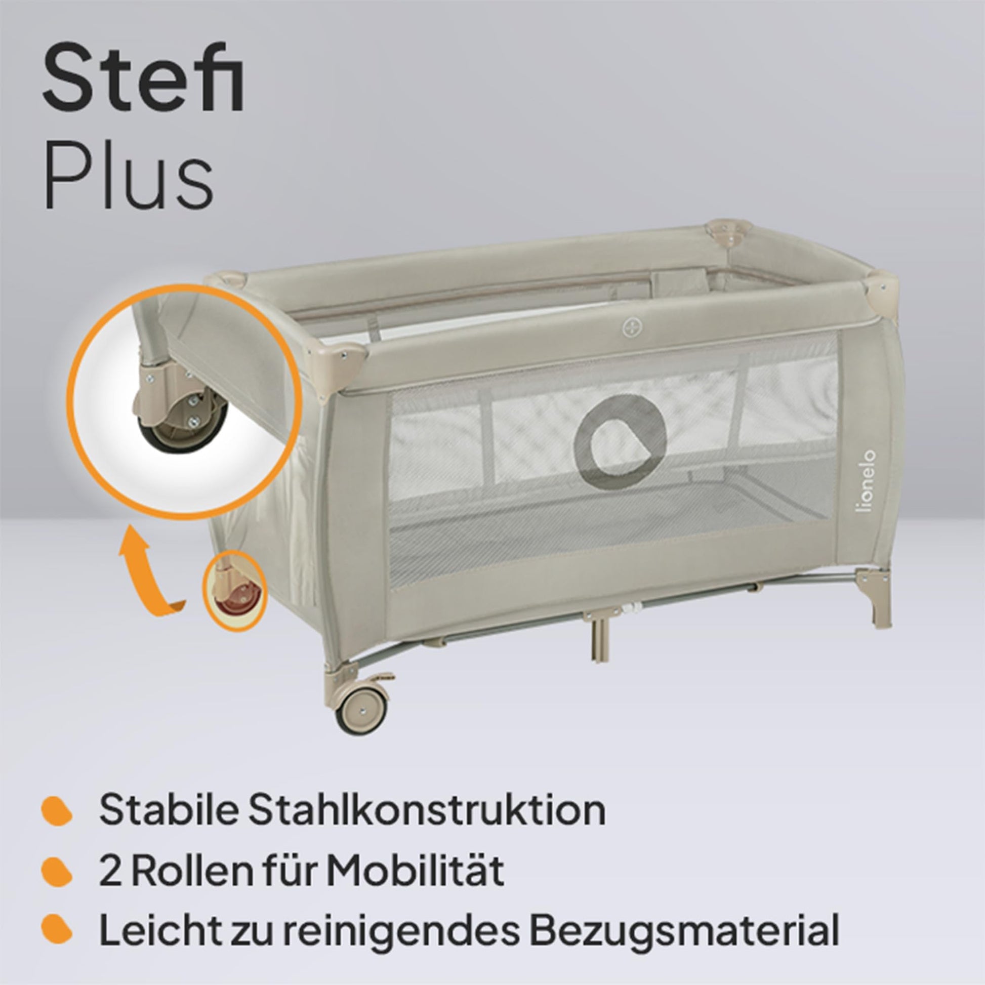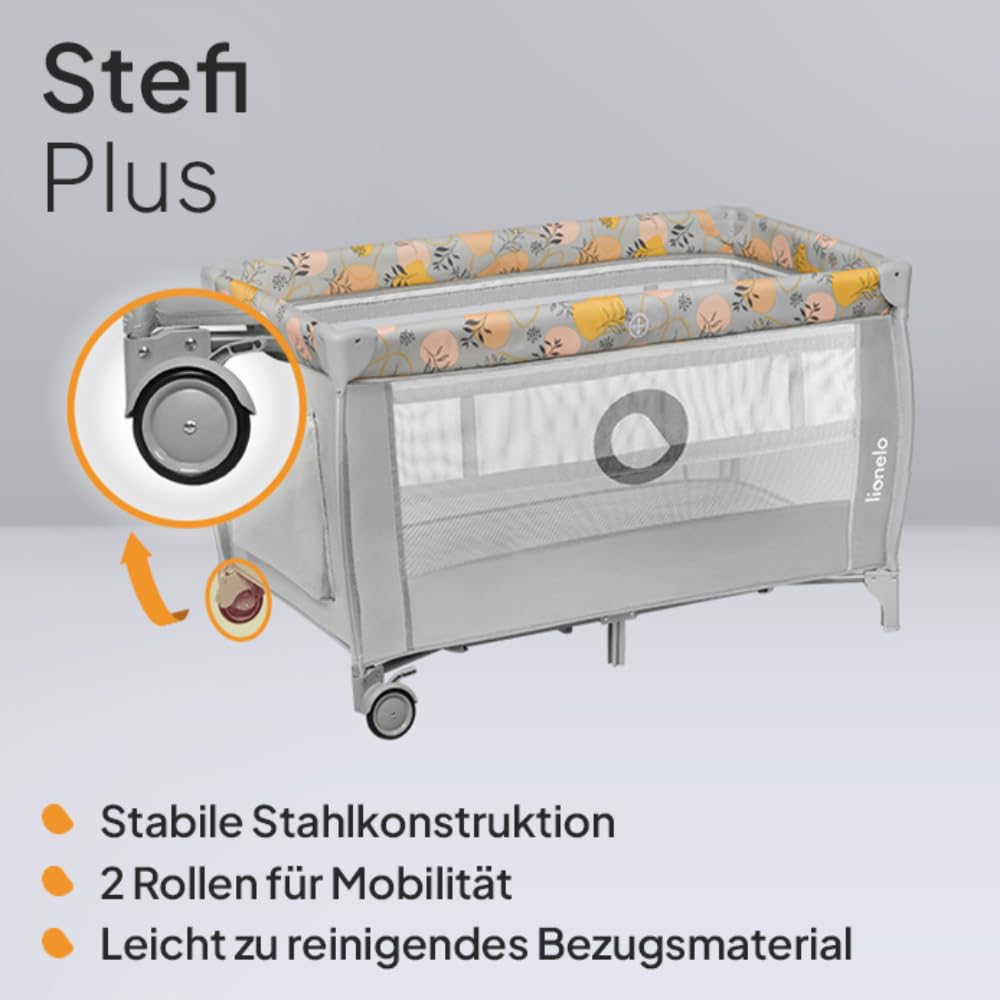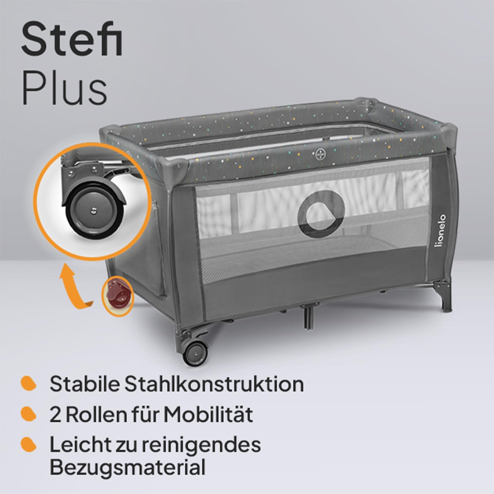 • INNOVATIVE MATRATZE: Im Reisegitterbett Stefi Plus wird eine neue Matratze aus 2 cm dickem T25-Polyurethanschaum verwendet, die die Wirbelsäule richtig richtet. Das Material ist verformungsbeständig und sorgt so für die richtige Unterstützung der Schlafposition des Kindes und für Wärmeisolierung. Die Matratze kann auf zwei Stufen eingestellt werden: niedrig und hoch