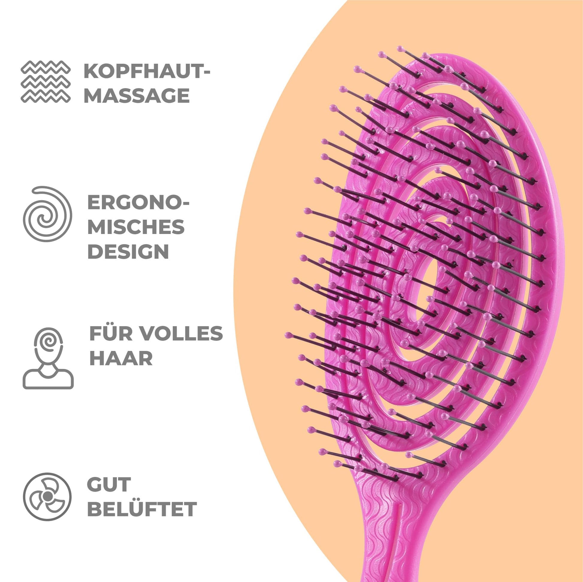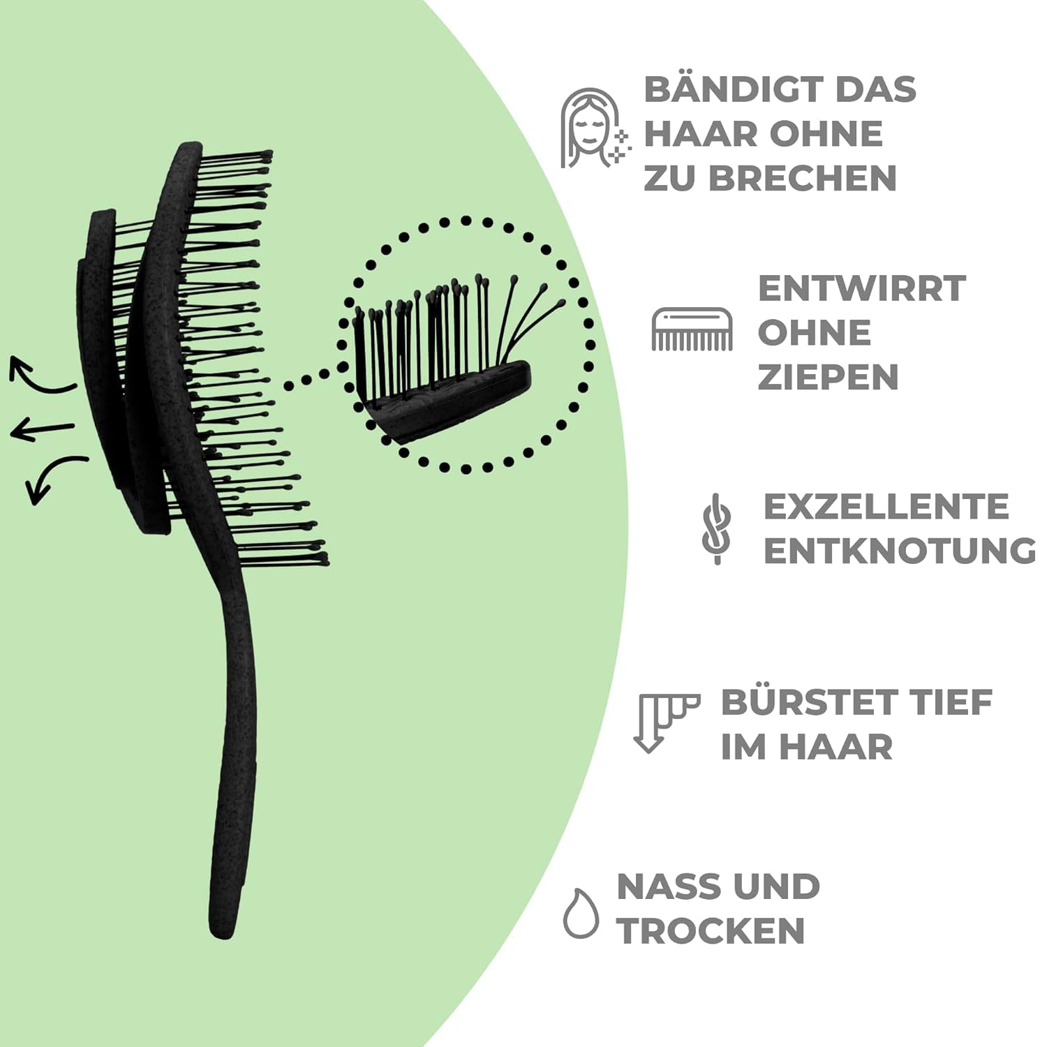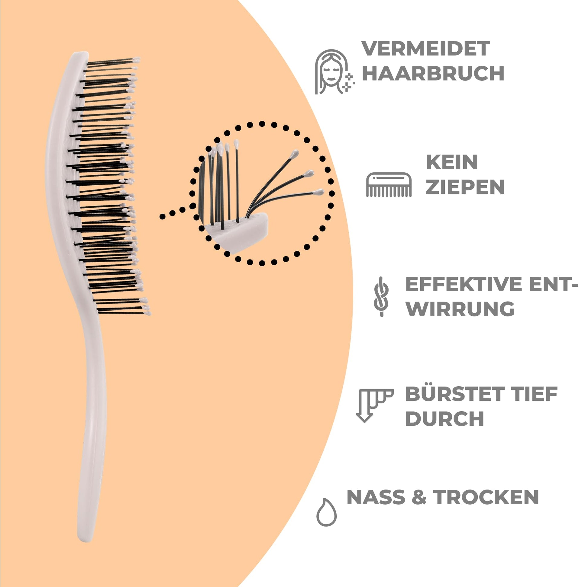 - Schonendes Bürsten: Unsere Haarbürsten ermöglichen ein reibungsloses und schmerzfreies Bürsten. Sie entwirren das Haar hervorragend und bürsten tief in das Haar hinein, ohne Haarbruch zu verursachen. Ideal für trockenes und nasses Haar.