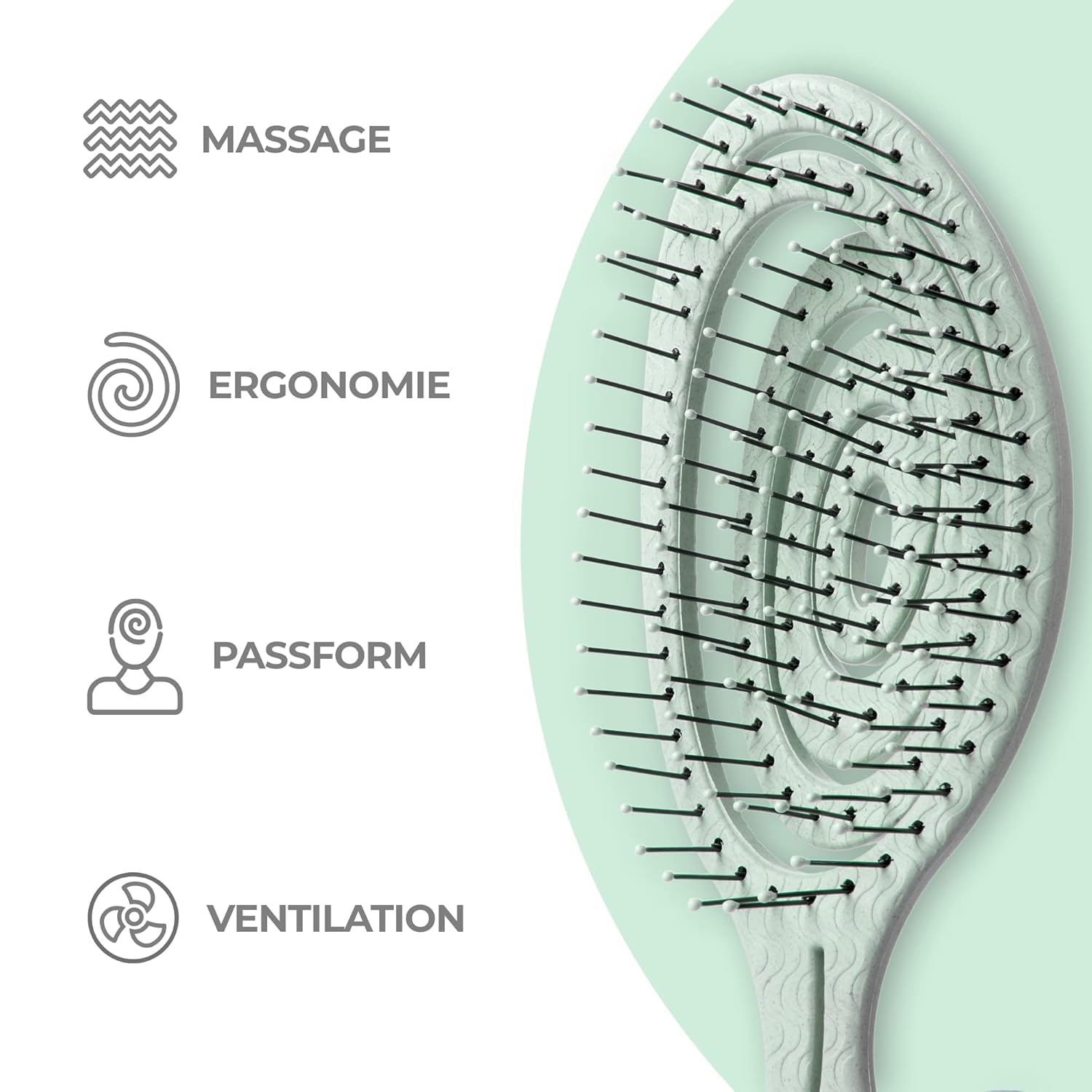 - Vegane Borsten: Unsere Bürste ist vegan und enthält keine Wildschweinborsten. Sie ist eine ausgezeichnete Wahl für diejenigen, die auf tierfreundliche Produkte achten.