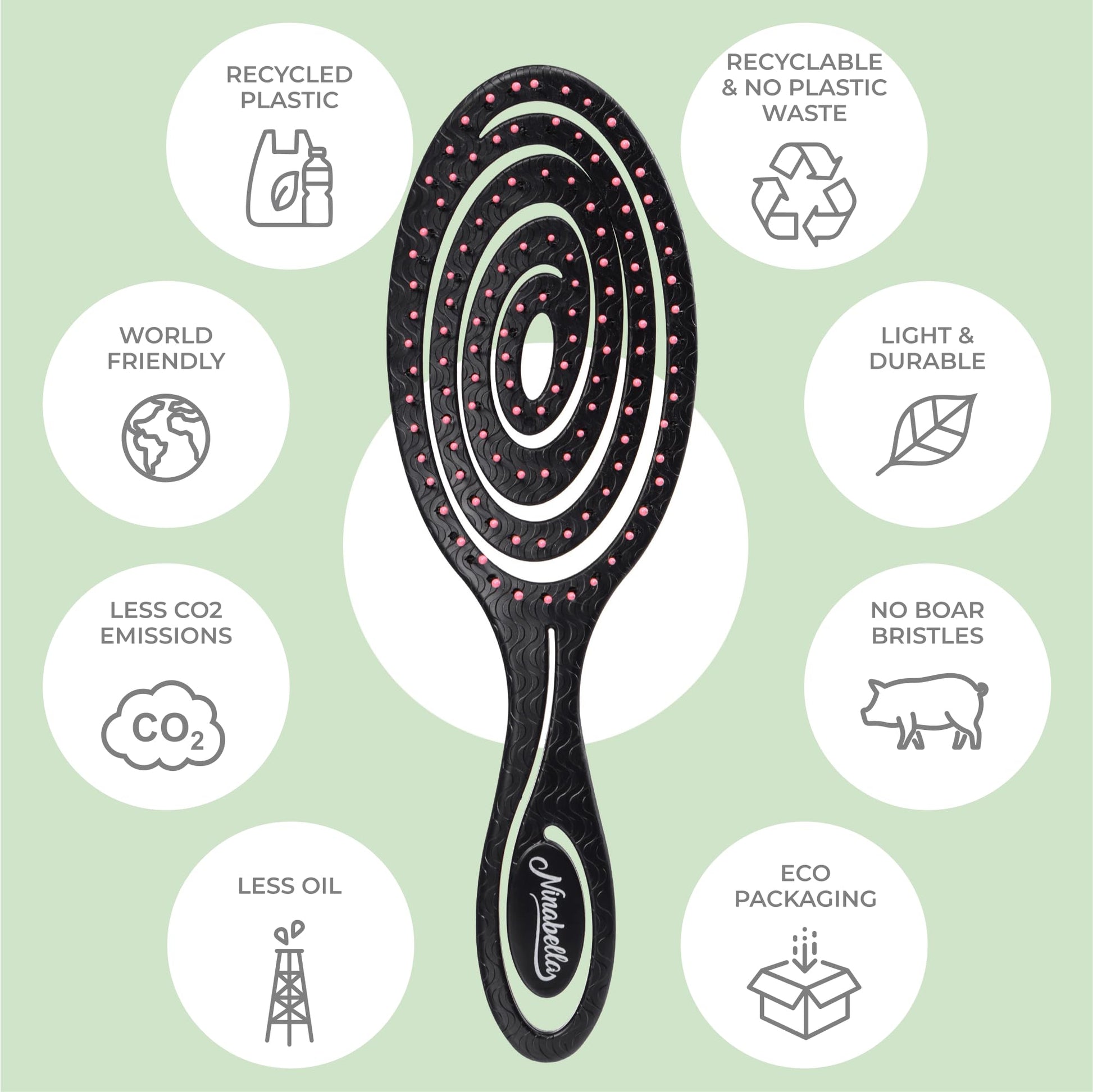 - Nachhaltige Gestaltung: Unsere Bürste ist nicht nur aus recyceltem Material gefertigt, sondern kommt auch in einer nachhaltigen Verpackung.