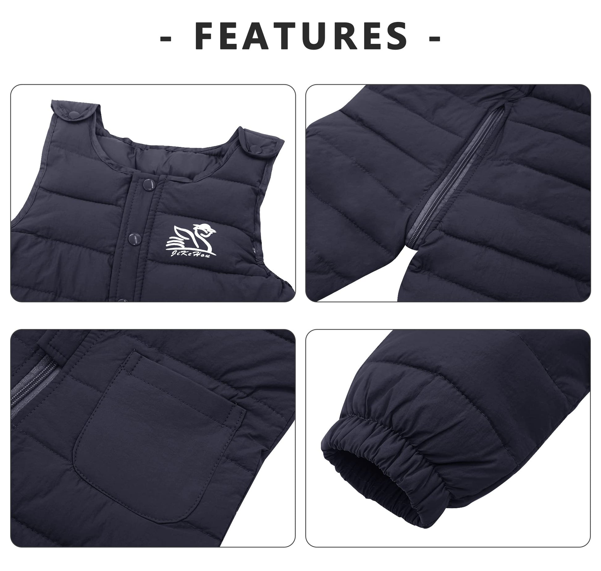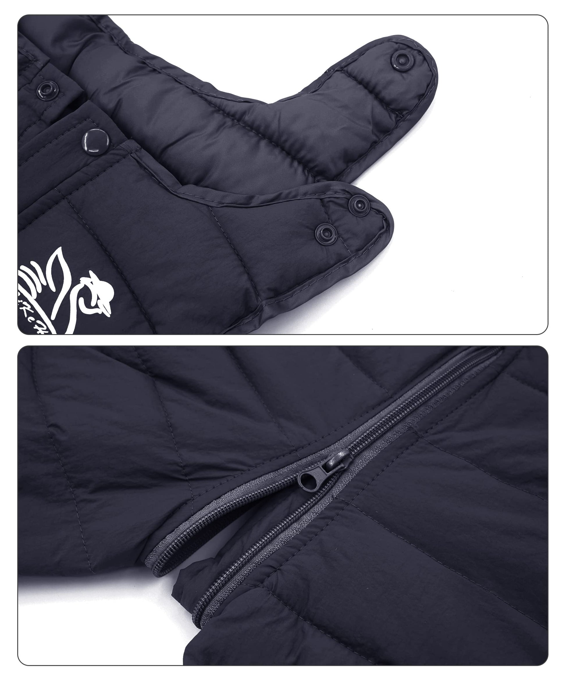 - Great details: zip opening, buttoned shoulder straps, elastic cuffs, easy to put on and take off in winter overalls, more comfortable for mothers to change their baby's nappies.