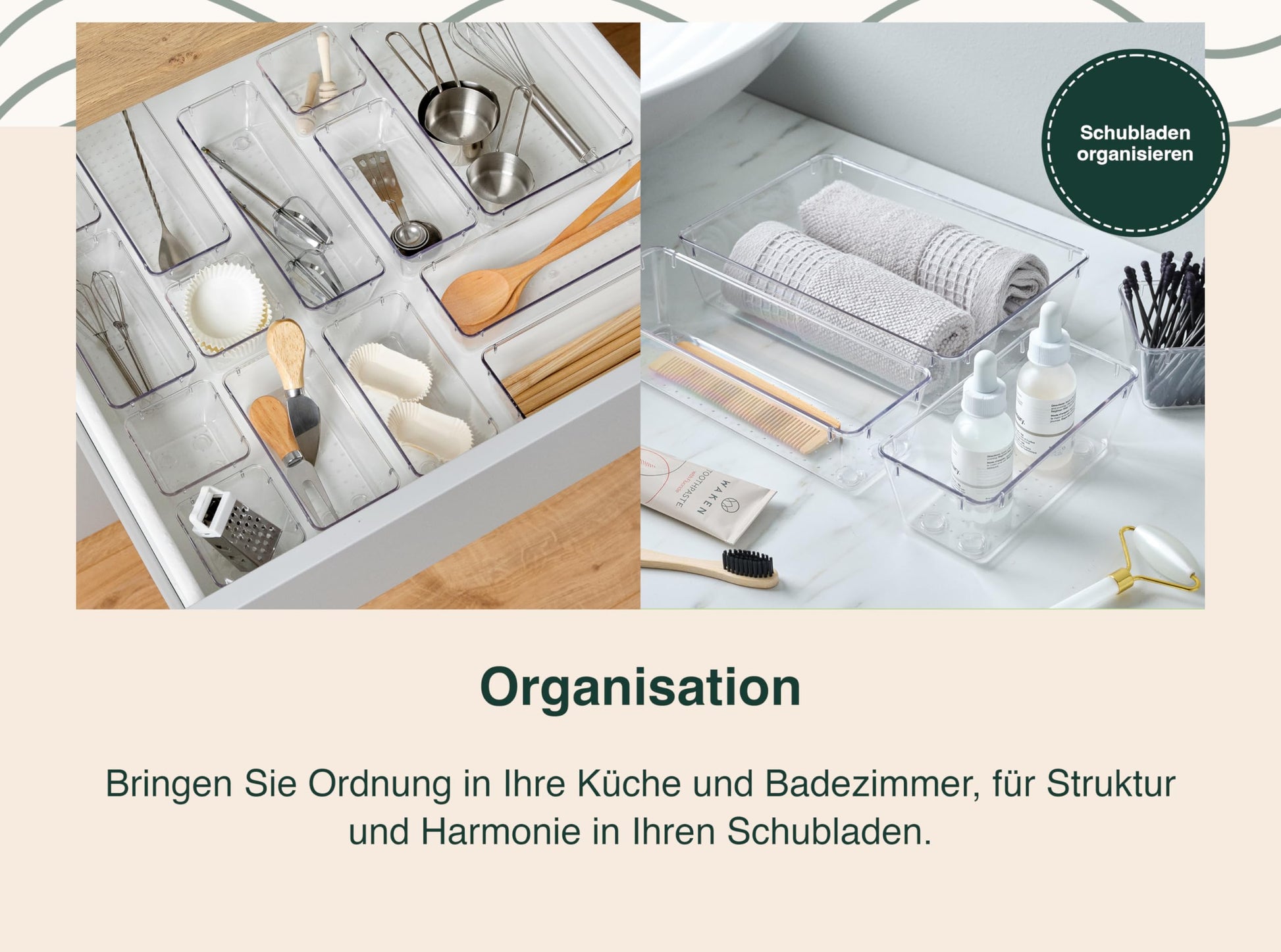 - Stilvolle Organisation: Unser Schubladenorganizer mit verstellbaren Trennwänden ermöglicht eine individuelle Aufteilung Ihrer Küchenutensilien. Die rutschfesten Böden sorgen für Stabilität, während die transparenten Bereiche einen guten Überblick über den Inhalt gewährleisten.