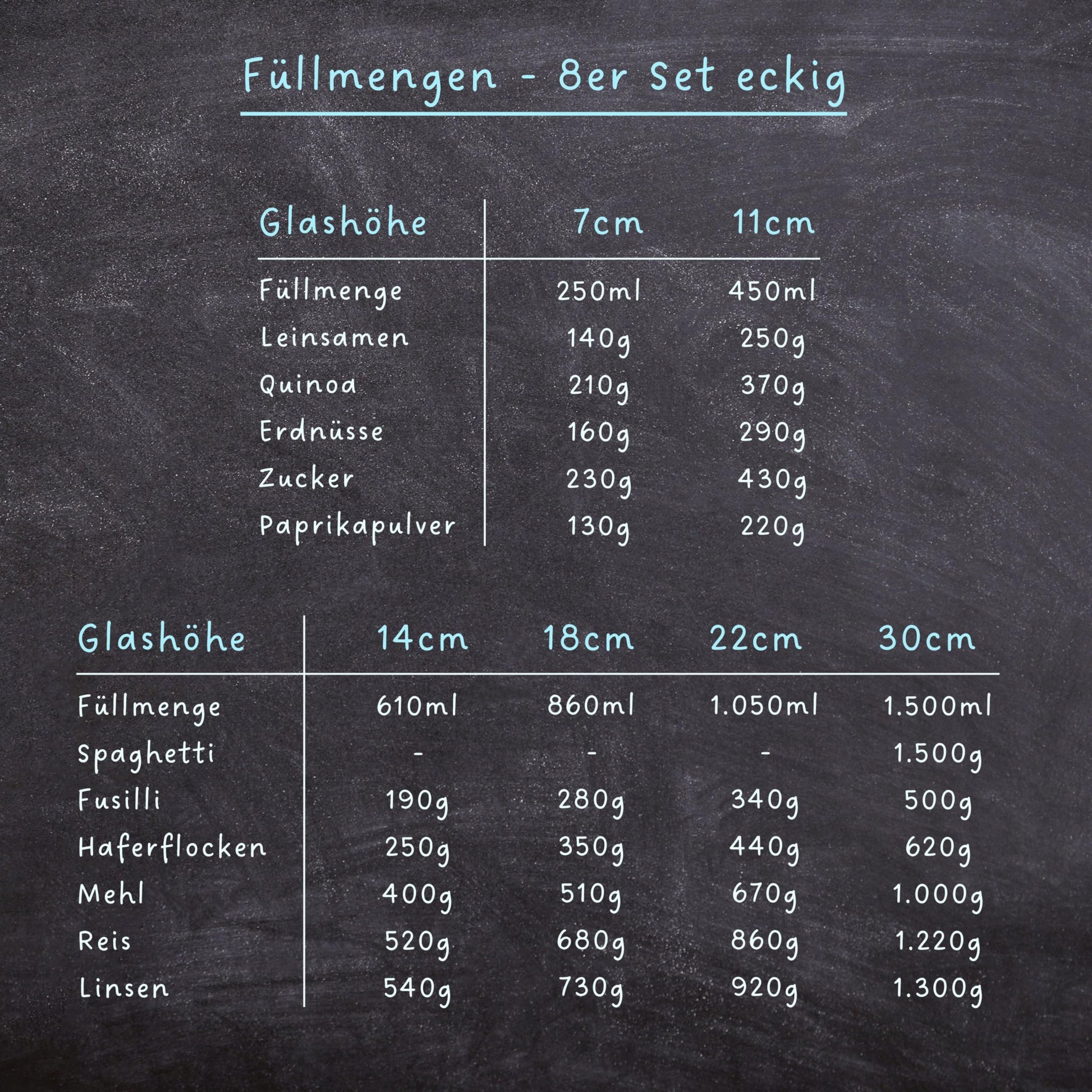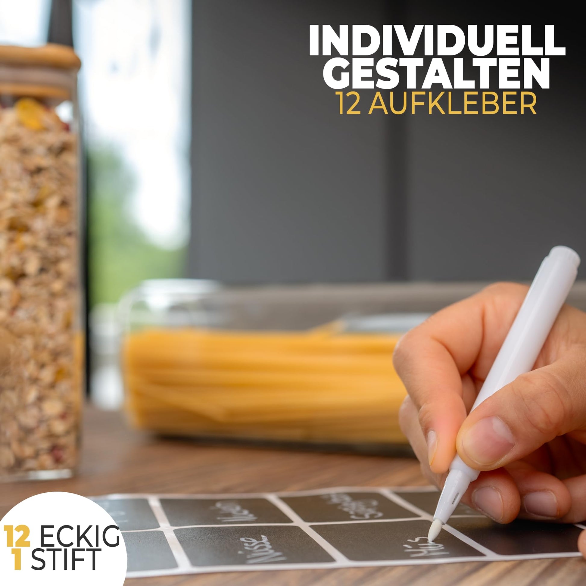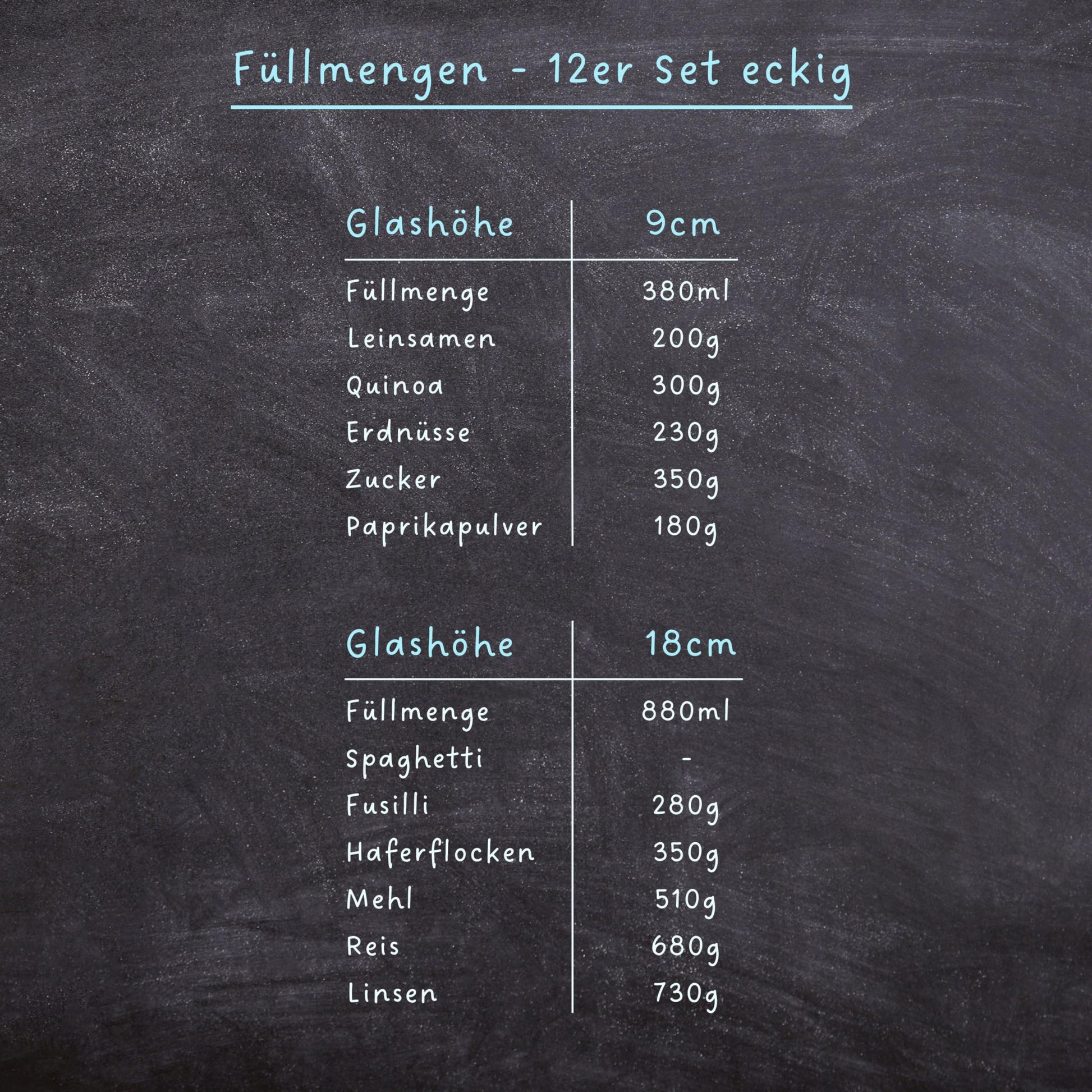 Aufbewahrungsbox Küche für alle Lebensmittel, Küchen Organizer, Vorratsgläser mit Deckel, Eckig - 12er Set, Erhöhte Glasstärke