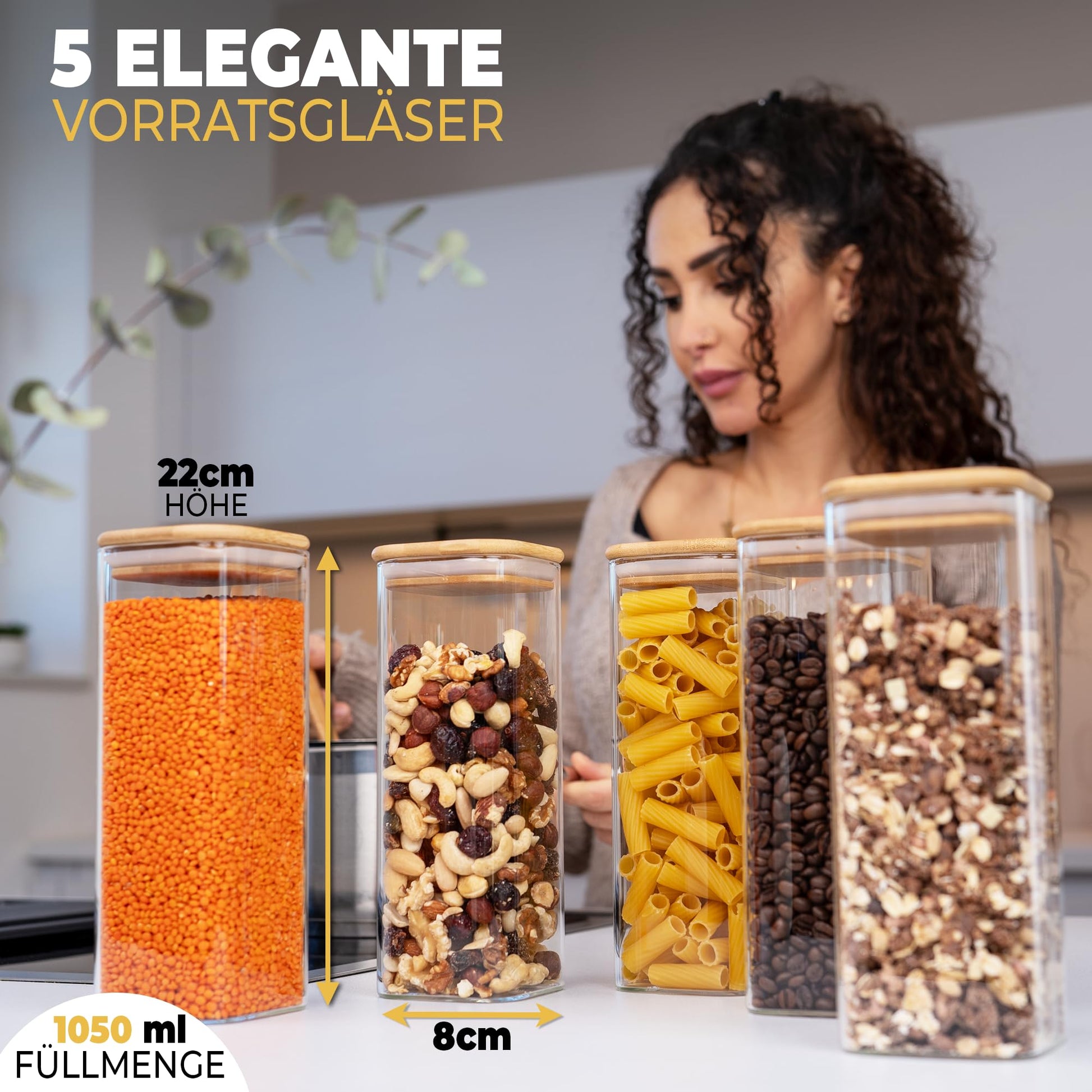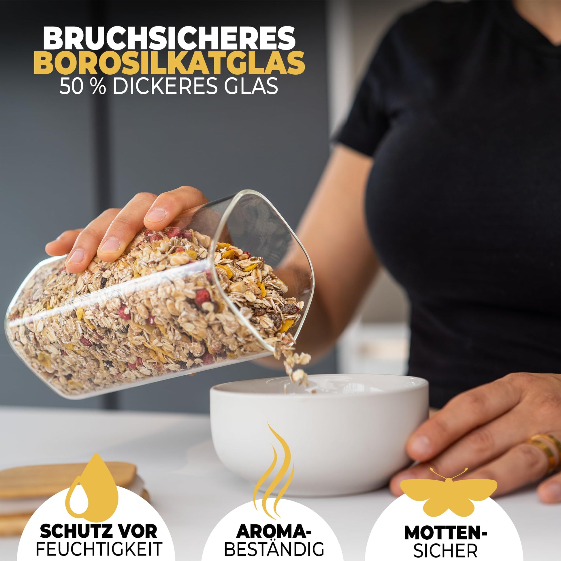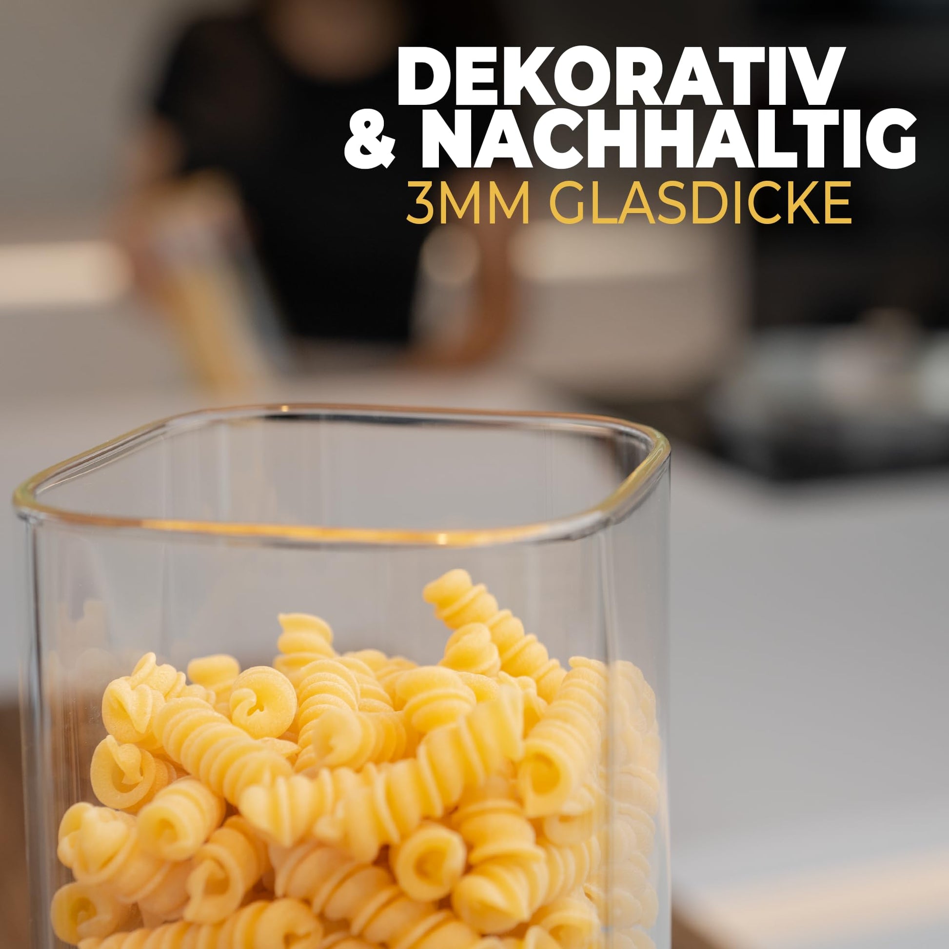 - ✅ ROBUSTE QUALITÄT – Unsere Vorratsgläser mit Deckel haben eine Glasdicke von 3mm und bieten maximale Haltbarkeit. Stabil und robust für die dauerhafte, sichere Aufbewahrung Ihrer Lebensmittel