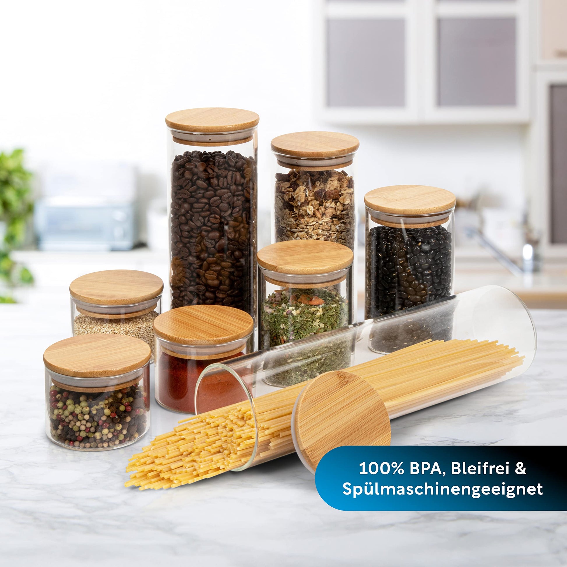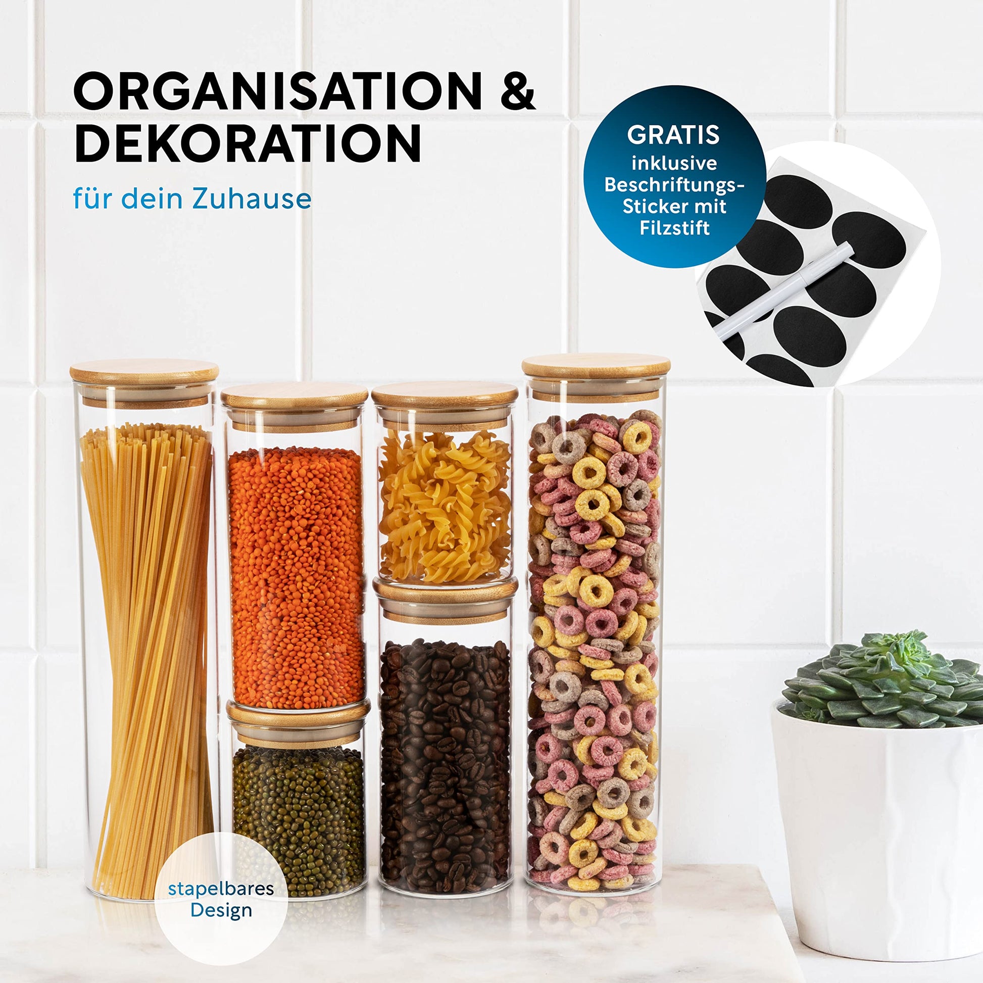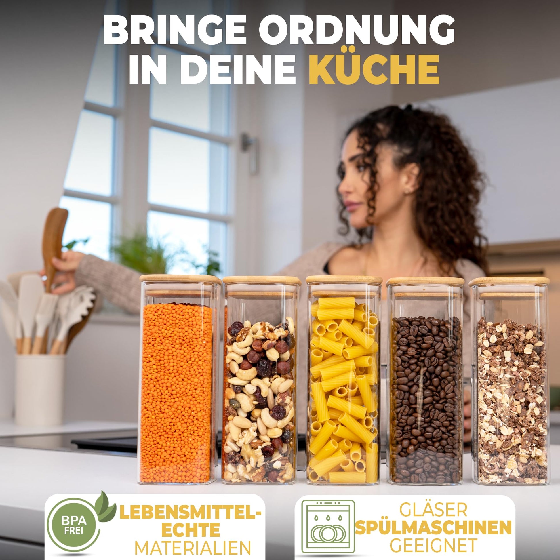 - ✅ ORDNUNG & DESIGN – Ob für Kaffee, Müsli oder Spaghetti – Schaffe dir mit den Vorratsdosen mit Deckel eine ästhetische Ordnung in deiner Küche. Erhältlich in Sets für unterschiedliche Füllmengen