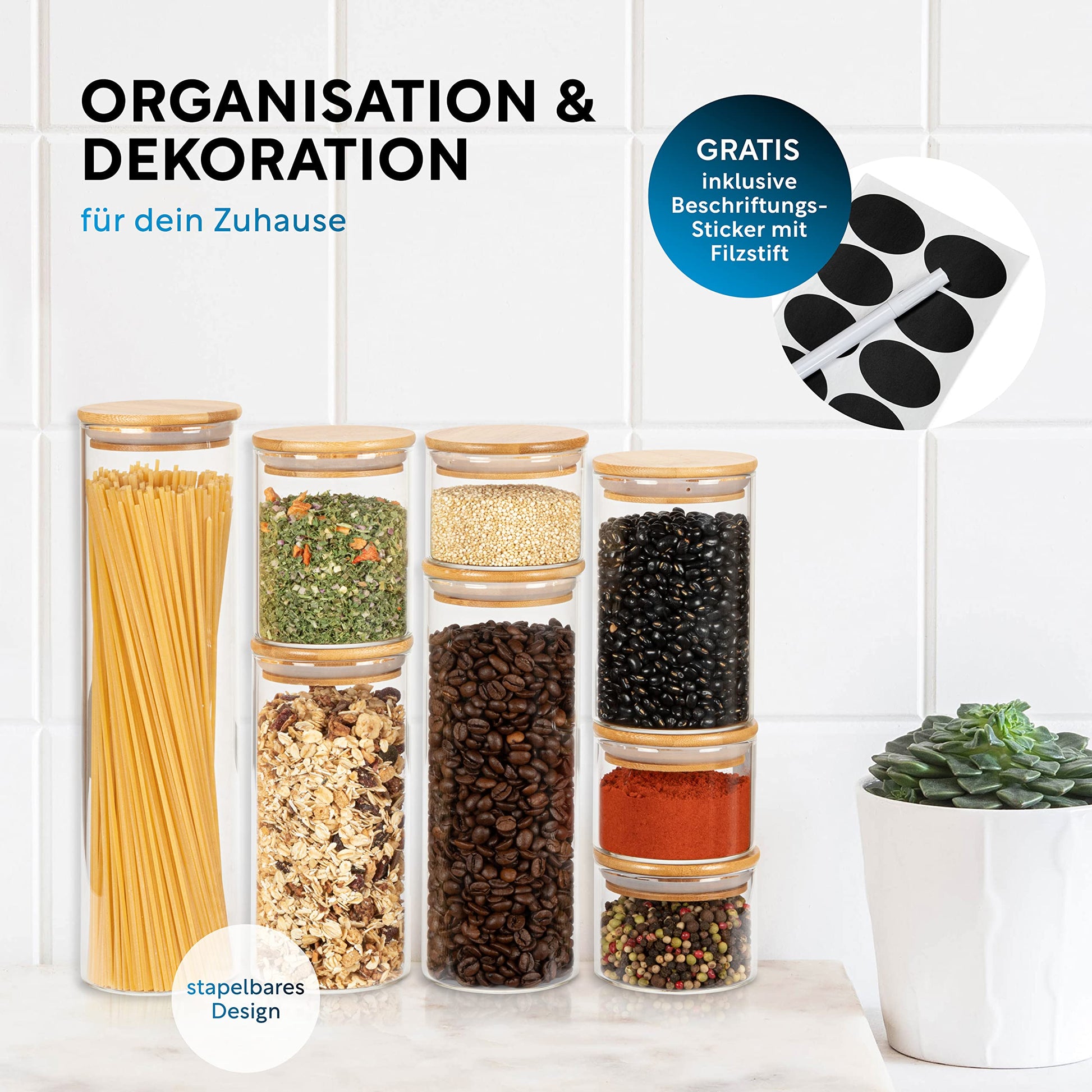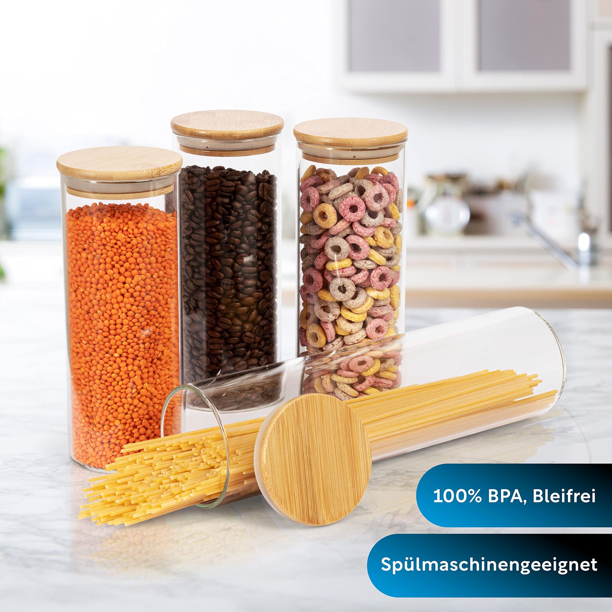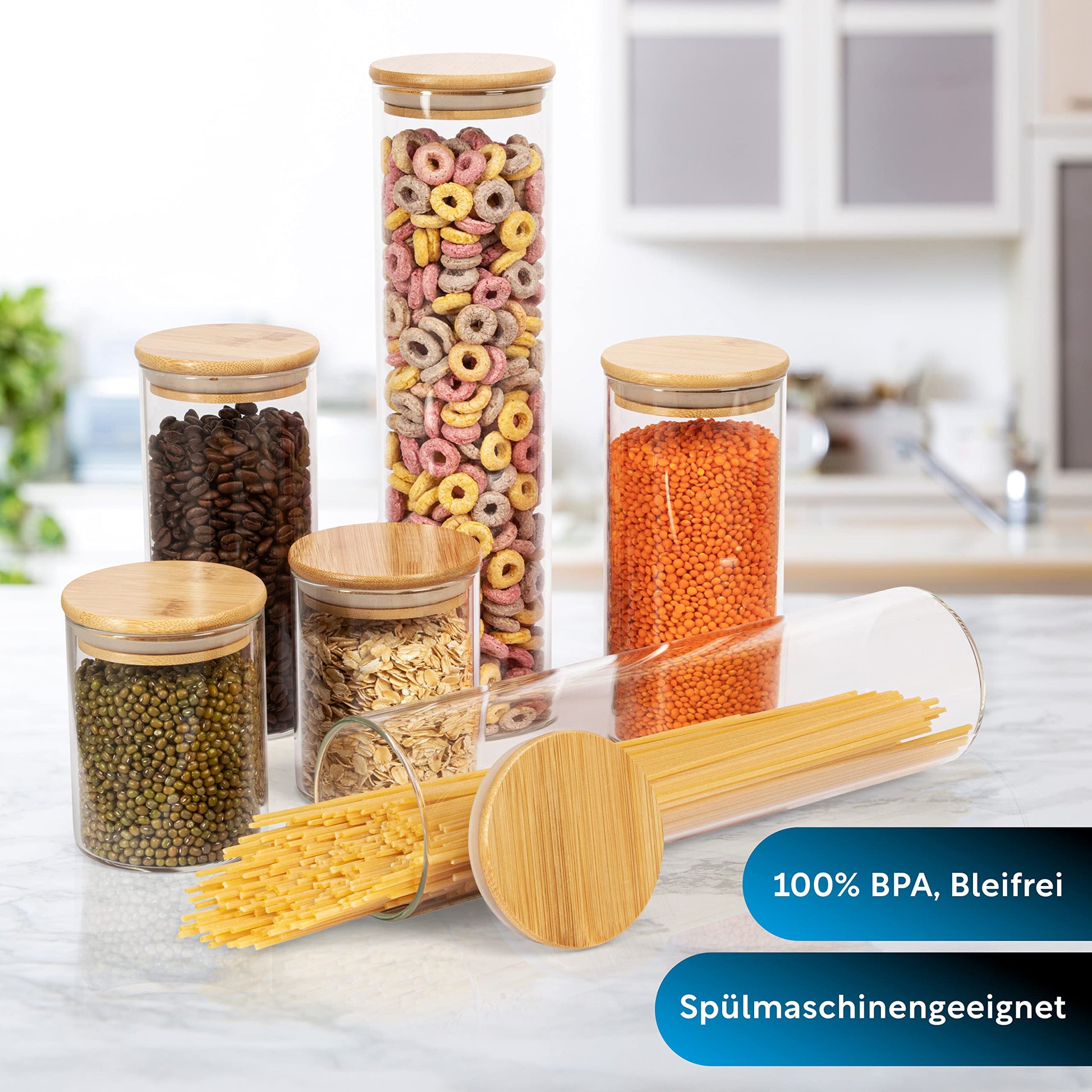 - ✅ ORDNUNG & DESIGN – Ob für Kaffee, Müsli oder Spaghetti – Schaffe dir mit den Vorratsdosen mit Deckel eine ästhetische Ordnung in deiner Küche. Erhältlich in Sets für unterschiedliche Füllmengen