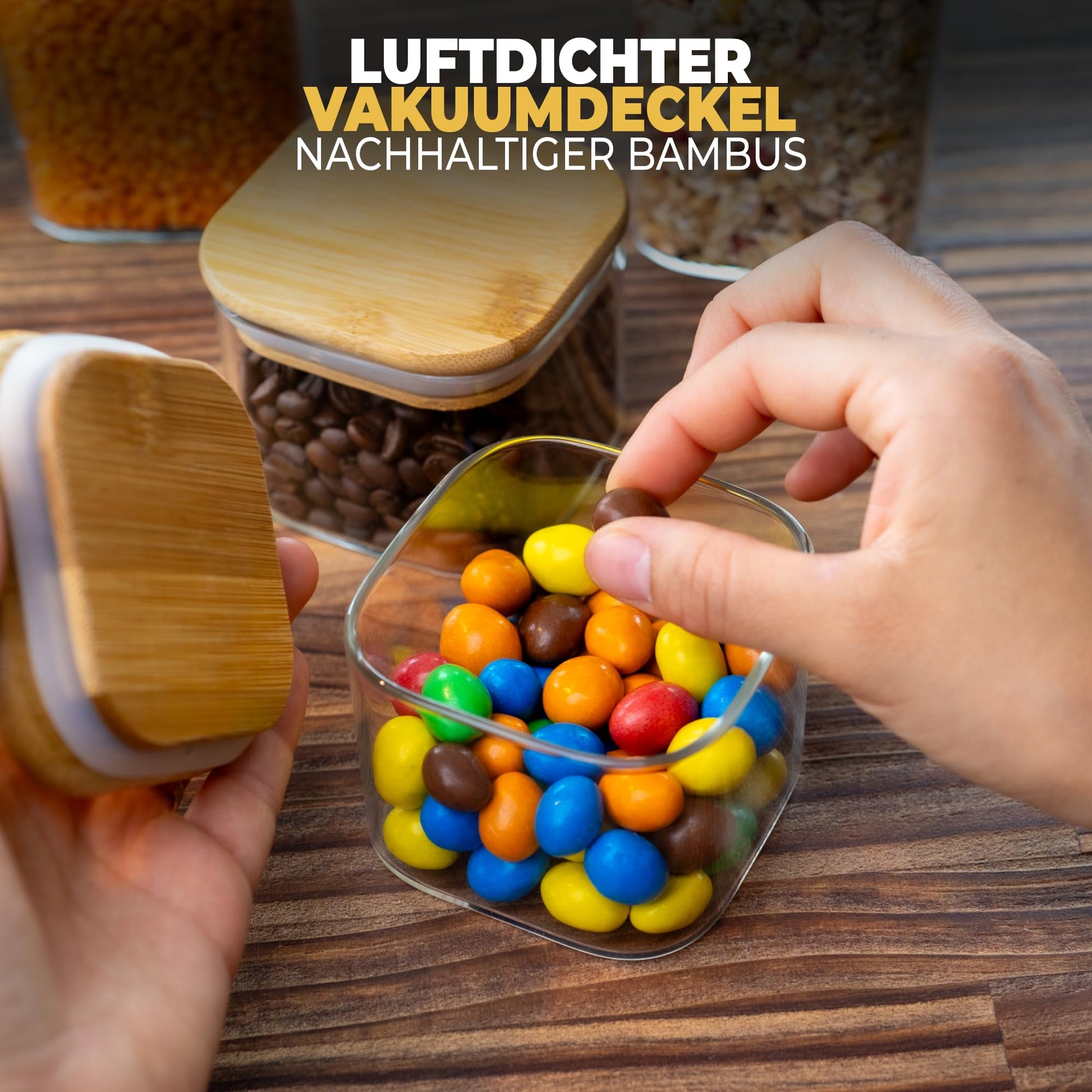 - ✅ LUFTDICHT & FRISCH – Dank des Vakuumdeckels aus Bambus bleibt der Inhalt in den luftdichten Vorratsdosen länger frisch. Auch vor Feuchtigkeit und Motten sind Lebensmittel sicher