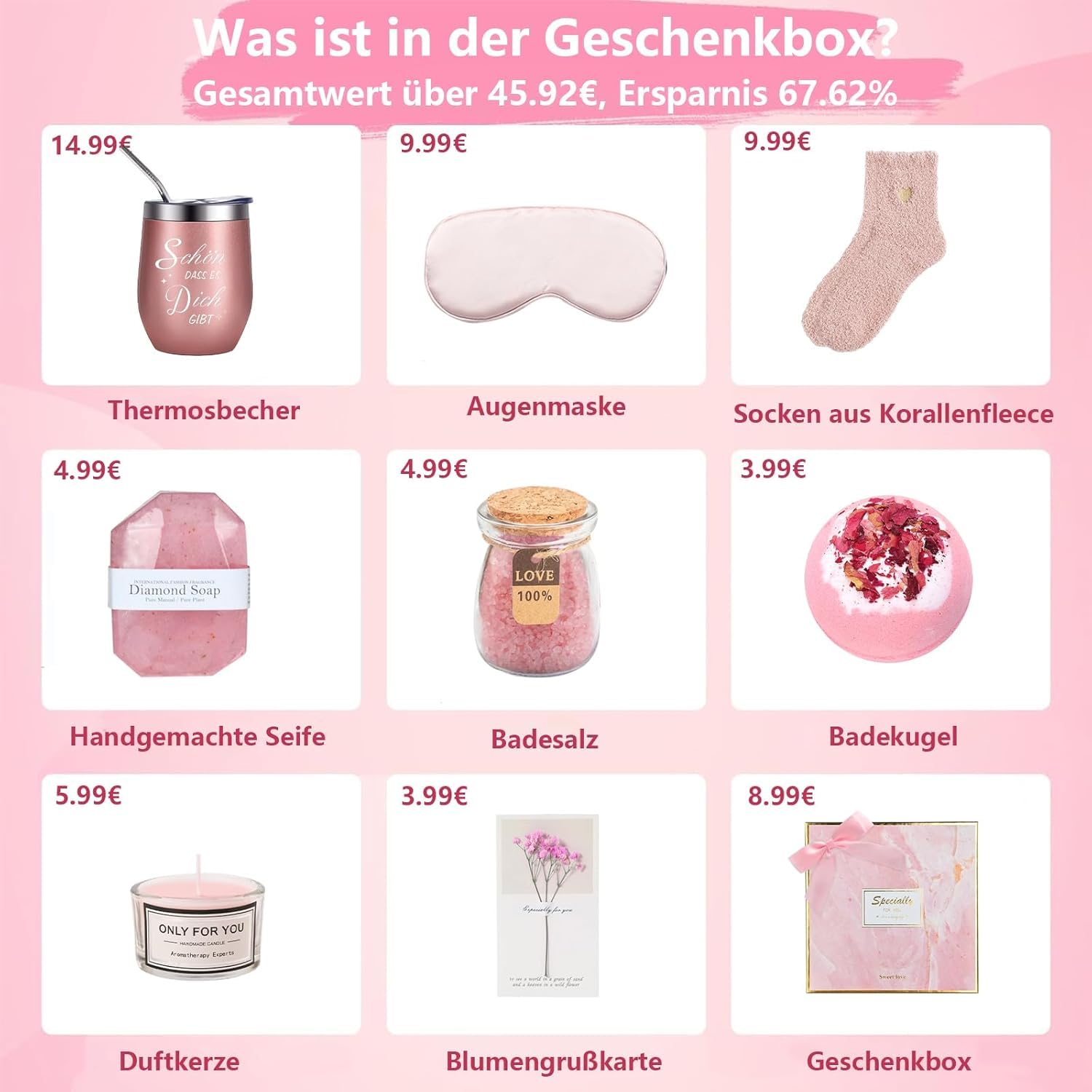 - Hervorragendes Preis-Leistungs-Verhältnis & exzellenter Service. Unsere Geschenke sind mit hochwertigen Produkten sorgfältig verpackt und wir garantieren Ihnen, dass Sie genau das erhalten, was Sie sehen – egal ob als Geburtstagsgeschenk oder für einen anderen Anlass. Sollte dieses Geschenkset Ihre Erwartungen nicht erfüllen, kontaktieren Sie uns bitte. Wir finden sicher eine passende Lösung. Legen Sie es in den Warenkorb, bestellen Sie ganz entspannt und bereiten Sie Ihren Liebsten die Überraschung, die sie verdienen.