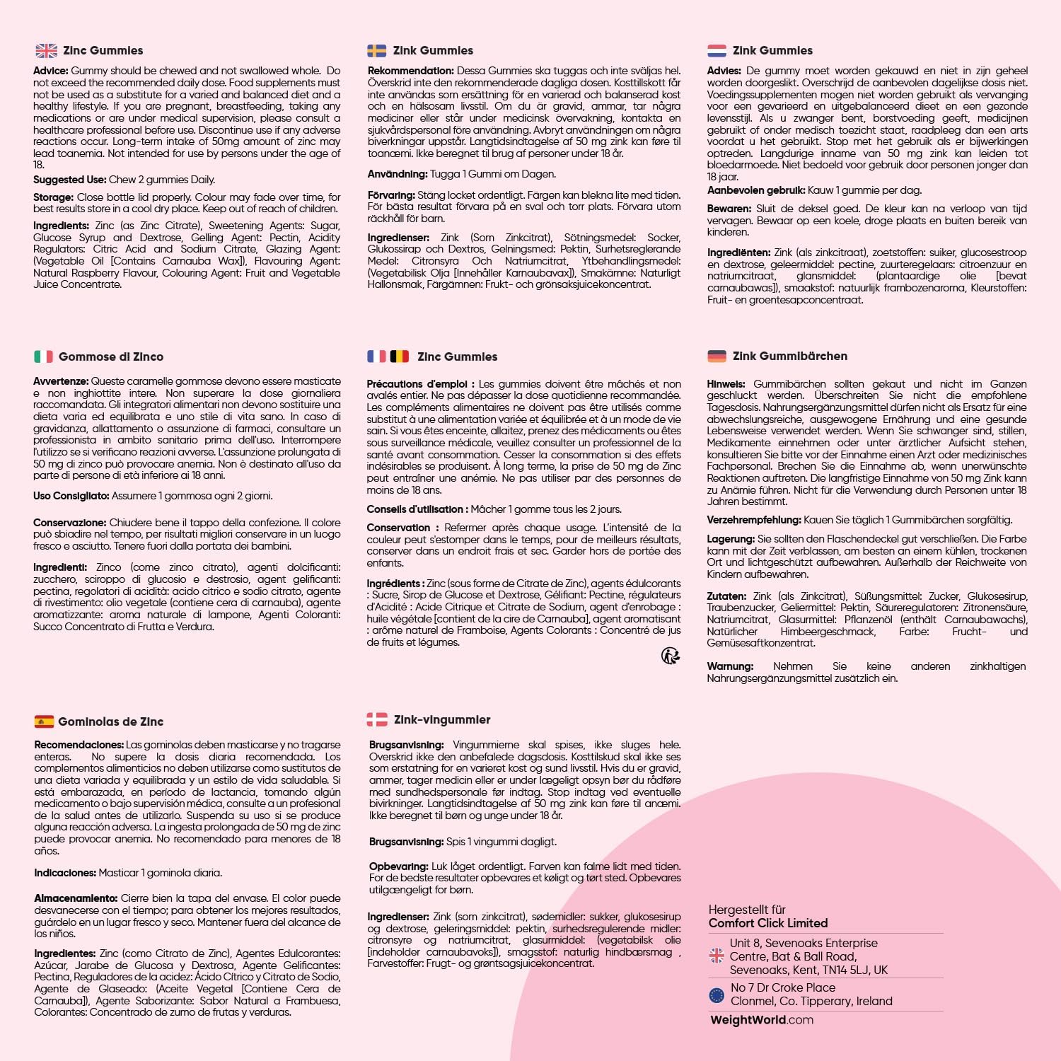 Zink Gummibärchen - Mit Himbeergeschmack - 90 vegane Zinkcitrat Gummies für 3 Monate Vorrat - Alternative zu Tabletten und Kapseln